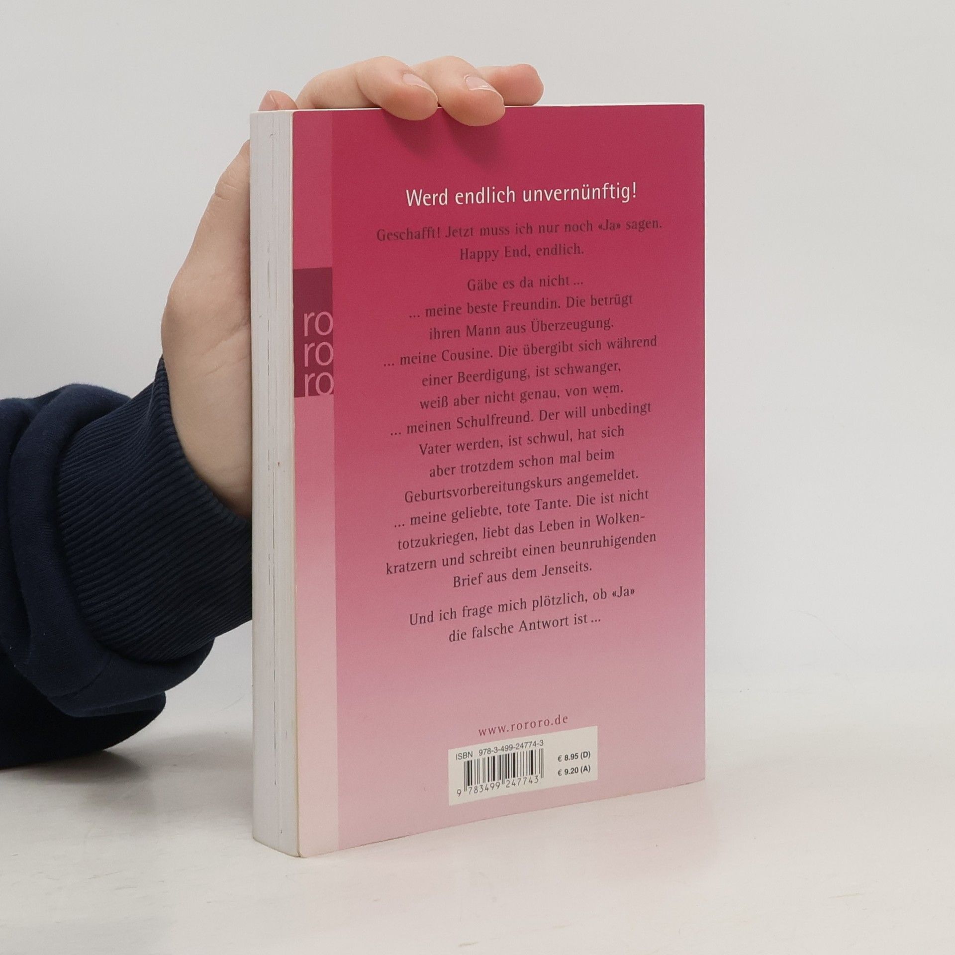 Werd endlich unvernünftig!Geschafft! Jetzt muss ich nur noch «ja» sagen. Happy End, endlich. Gäbe es da nicht ...… meine beste Freundin. Die betrügt ihren Mann aus Überzeugung.… meine Cousine. Die übergibt sich während einer Beerdigung, ist schwanger, weiß aber nicht genau, von wem.… meinen Schulfreund. Der will unbedingt Vater werden, ist schwul, hat sich aber trotzdem schon mal beim Geburtsvorbereitungskurs angemeldet.… meine geliebte, tote Tante. Die ist nicht totzukriegen, liebt das Leben in Wolkenkratzern und schreibt einen beunruhigenden Brief aus dem Jenseits.Und ich frage mich plötzlich, ob «Ja» die falsche Antwort ist …