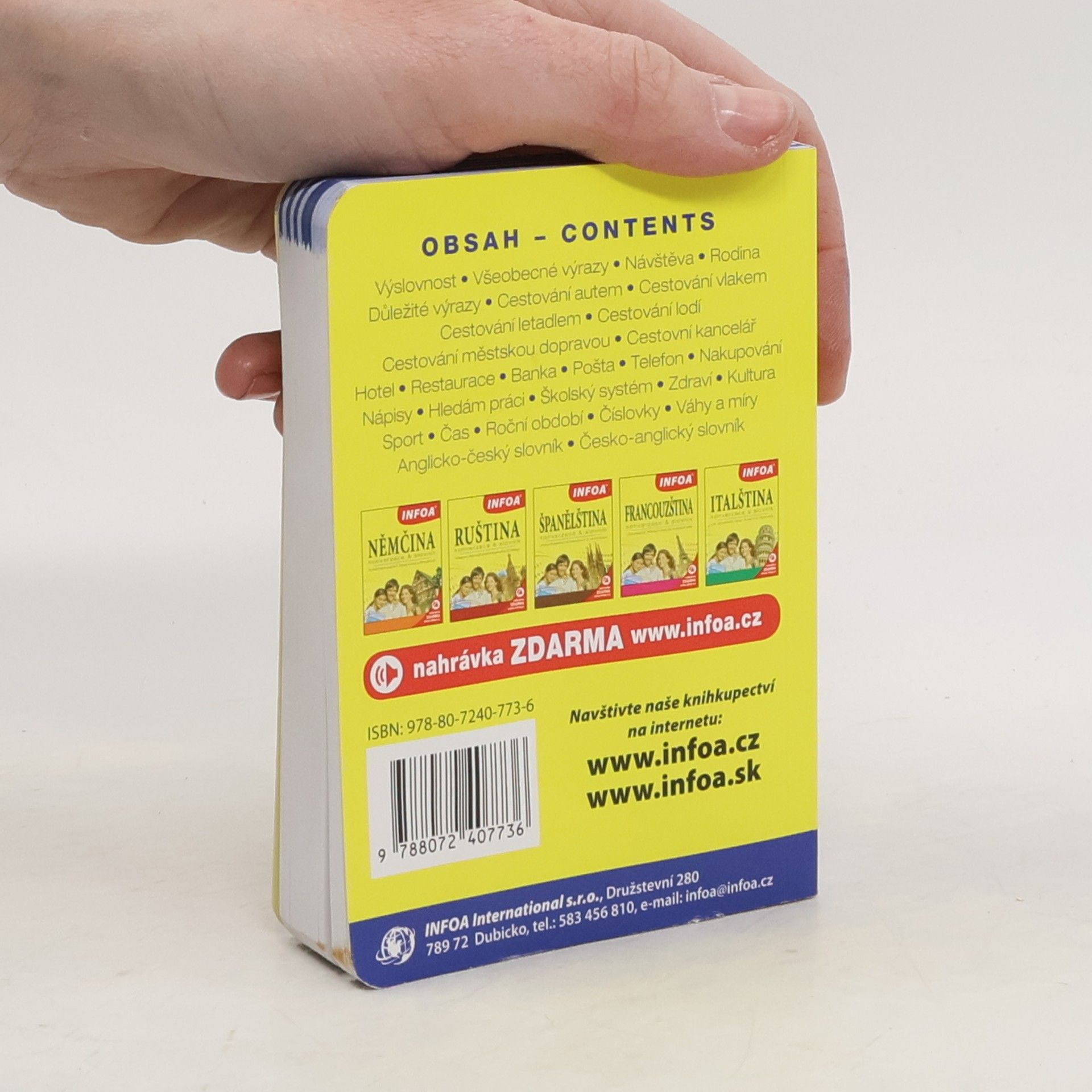 Konverzace a základní slovníček v jednom. Tato přehledná jazyková příručka se stane vaším neocenitelným průvodcem na cestách v zahraničí. Obsahuje základní konverzační témata potřebná v situacích, které nás při cestování mohou potkat – hotel, restaurace, nakupování, doprava, kultura a mnoho dalších. Jednotlivé kapitoly jsou barevně členěny podle tématu, kterému se věnují, a jsou tak mnohem přehlednější pro běžné využití v daném okamžiku. Druhou část jazykového průvodce na cesty tvoří oboustranný slovníček. Novinkou je možnost získat na stránkách nakladatele zvukovou verzi konverzace v anglickém jazyce, kterou publikace obsahuje.