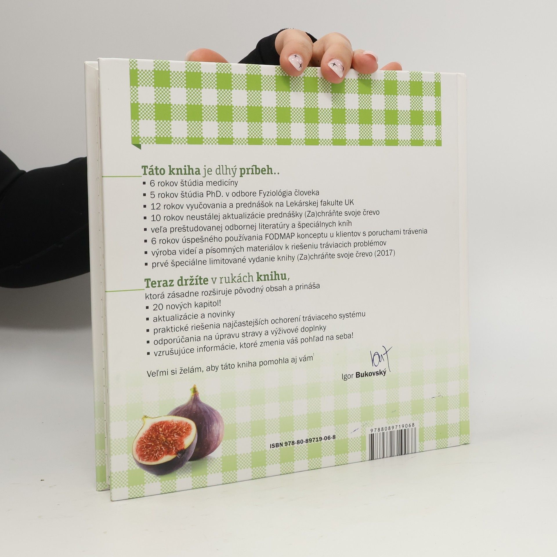 Doba tráviacich problémov vyžaduje nový pohľad na ich riešenia, ale aj nový pohľad seba, na svoje jedlo a svoje životné návyky. MUDr. Igor Bukovský, PhD. prináša finálnu verziu pôvodnej, mimoriadne úspešnej knihy „Zachráňte svoje črevo“, v ktorej nájdete všetko podstatné, čo sa týka porúch a ochorení tráviaceho traktu – od úst až po konečník, od zápalu ďasien až po varixy a rakovinu hrubého čreva. Vrátane praktických návodov na zloženie stravy a používanie výživových doplnkov po operáciach brucha, žalúdka a čreva. Táto kniha je dlhý príbeh: 6 rokov štúdia medicíny 5 rokov štúdia PhD. v odbore Fyziológia človeka 12 rokov vyučovania a prednášok na Lekárskej fakulte 10 rokov neustálej aktualizácie prednášky (Za)chráňte svoje črevo! veľa preštudovanej odbornej literatúry a špeciálnych kníh 6 rokov úspešného používania FODMAP konceptu u klientov s poruchami trávenia výroba videí a písomných materiálov k riešeniu tráviacich problémov prvé špeciálne limitované vydanie knihy (Za)chráňte svoje črevo (2017) Táto kniha, ktorú sa chystáte kúpiť, zásadne rozširuje pôvodný obsah a prináša: 20 nových kapitol – určite nazrite do Obsahu, ktorý nájdete v grafickej informácií o knihe aktualizácie a novinky z výskumu praktické riešenia najčastejších ochorení tráviaceho systému odporúčania na úpravu stravy a vhodné výživové doplnky vzrušujúce informácie, ktoré zmenia váš pohľad na seba!