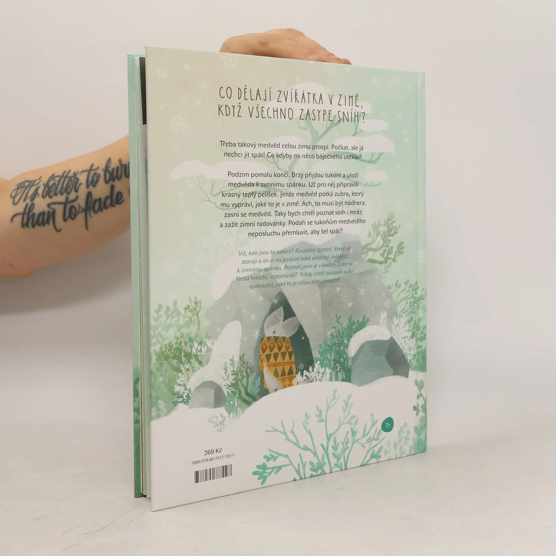 Co dělají zvířátka v zimě, když všechno zasype sníh? Třeba takový medvěd celou zimu prospí. Počkat, ale já nechci jít spát! Co kdyby mi něco báječného uteklo? Podzim pomalu končí. Brzy přijdou tukoni a uloží medvěda k zimnímu spánku. Už pro něj připravili krásný teplý pelíšek. Jenže medvěd potká zubra, který mu vypráví, jaké to je v zimě. Ach, to musí být nádhera, zasní se medvěd. Taky bych chtěl poznat sníh i mráz a zažít zimní radovánky. Podaří se tukoňům medvědího neposluchu přemluvit, aby šel spát?