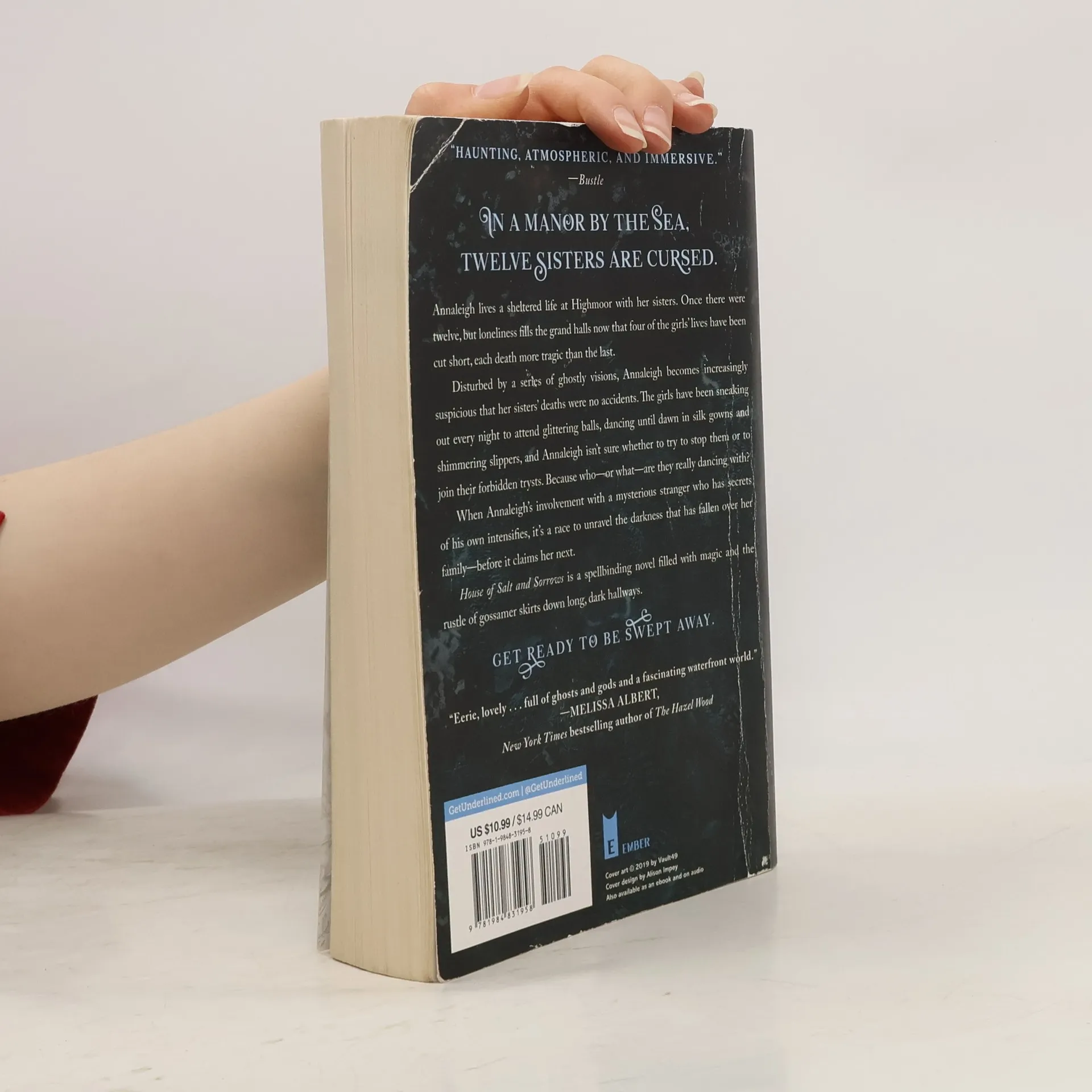 Annaleigh lives a sheltered life at Highmoor, a manor by the sea, with her sisters and their father and stepmother. Once there were twelve, but loneliness fills the grand halls now that four of the girls' lives have been cut short. Each death was more tragic than the last - the plague, a plummeting fall, a drowning, a slippery plunge - and there are whispers throughout the surrounding villages that the family is cursed by the gods. Disturbed by a series of ghostly visions, Annaleigh becomes increasingly suspicious that her sisters' deaths were no accidents. The girls have been sneaking out every night to attend glittering balls, dancing until dawn in silk gowns and shimmering slippers, and Annaleigh isn't sure whether to try to stop them to join their forbidden trysts. Because who - or what - are they really dancing with? When Annaleigh's involvement with a mysterious stranger who has secrets of his own intensifies, it's a race to unravel the darkness that has fallen over her family - before it claims her next. House of Salt and Sorrows is a spellbinding novel filled with magic and the rustle of gossamer skirts down long, dark hallways. Get ready to be swept away. -- From dust jacket