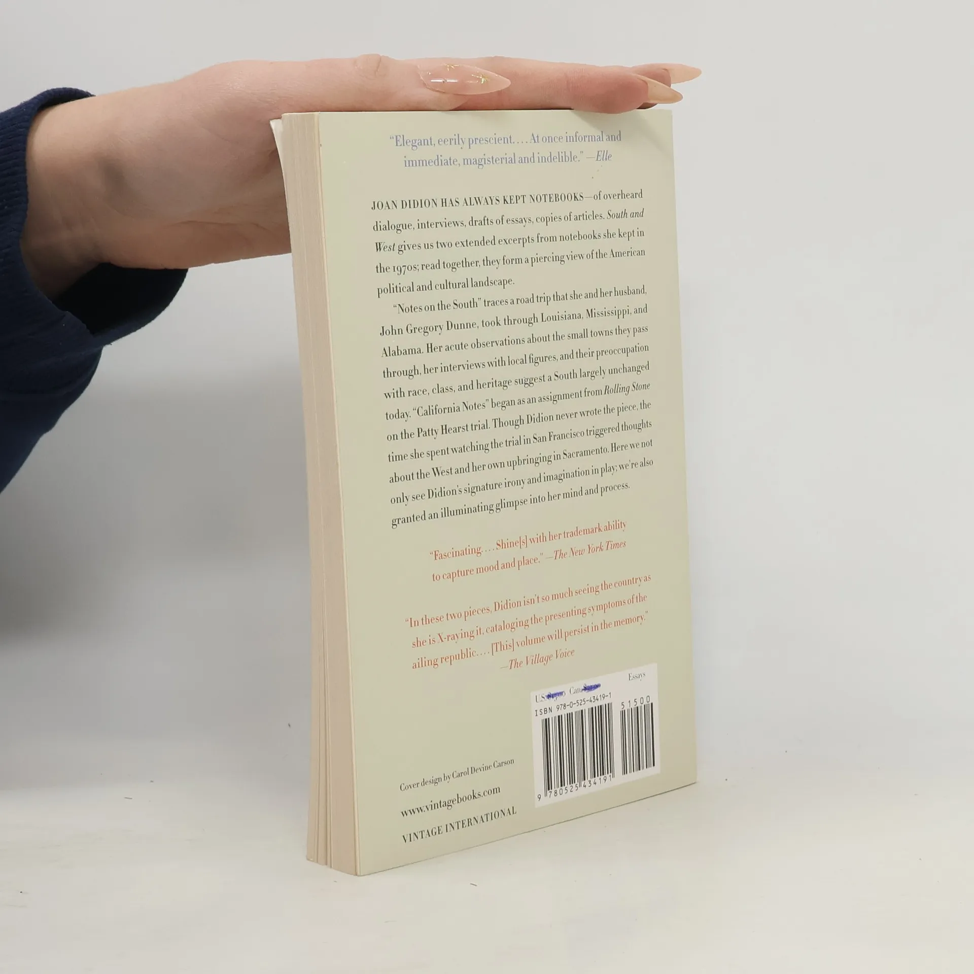 NATIONAL BESTSELLER • “One of contemporary literature’s most revered essayists revives her raw records from a 1970s road trip across the American southwest ... her acute observations of the country’s culture and history feel particularly resonant today.” —Harper’s Bazaar Joan Didion, the bestselling, award-winning author of The Year of Magical Thinking and Let Me Tell You What I Mean, has always kept notebooks—of overheard dialogue, interviews, drafts of essays, copies of articles. Here are two extended excerpts from notebooks she kept in the 1970s; read together, they form a piercing view of the American political and cultural landscape. “Notes on the South” traces a road trip that she and her husband, John Gregory Dunne, took through Louisiana, Mississippi, and Alabama. Her acute observations about the small towns they pass through, her interviews with local figures, and their preoccupation with race, class, and heritage suggest a South largely unchanged today. “California Notes” began as an assignment from Rolling Stone on the Patty Hearst trial. Though Didion never wrote the piece, the time she spent watching the trial in San Francisco triggered thoughts about the West and her own upbringing in Sacramento. Here we not only see Didion’s signature irony and imagination in play, we’re also granted an illuminating glimpse into her mind and process.
