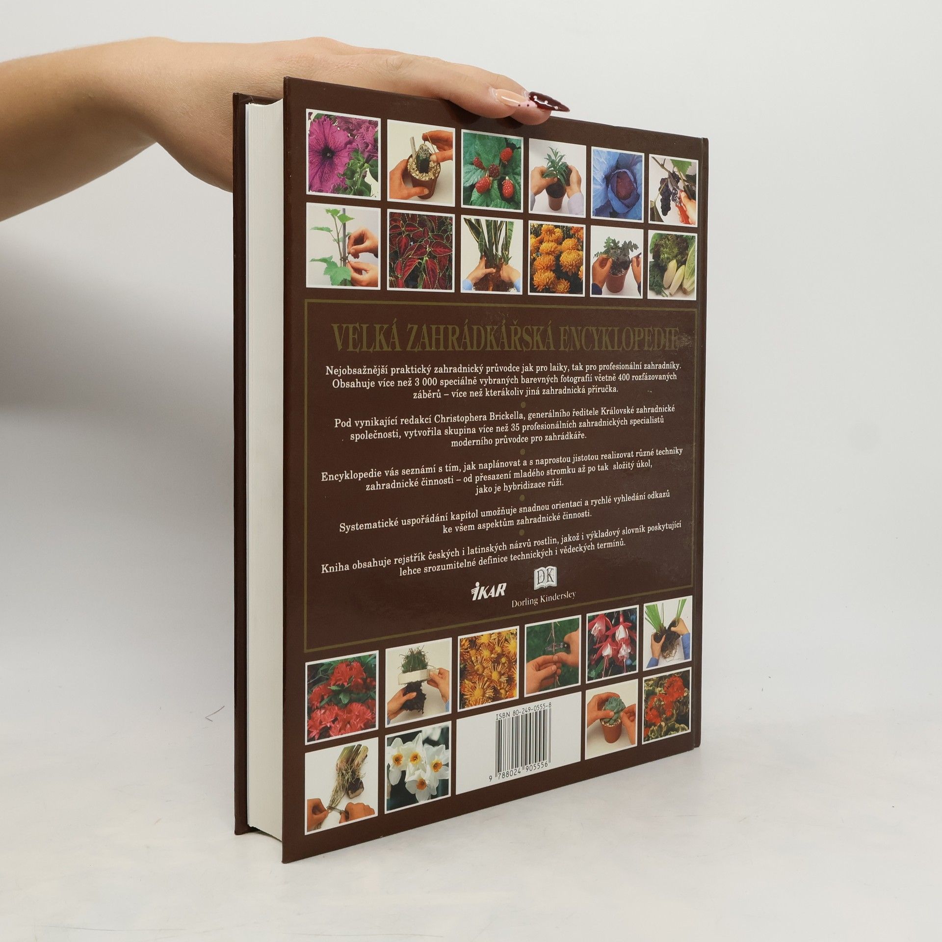 Praktický průvodce zahrádkářskými technikami, navrhováním a údržbou výsadeb i pěstováním květin, okrasných rostlin, ovoce a zeleniny Nejobsažnější praktický zahradnický průvodce pro laiky i profesionální zahradníky obsahuje více než 3000 barevných fotografií včetně 4000 rozfázovaných záběrů. Encyklopedie vás seznámí s tím, jak naplánovat a realizovat různé techniky zahradnické činnosti - od přesazení mladého stromku až třeba po složitou hybridizaci růží. Systematické uspořádání kapitol usnadňuje orientaci a rychlé vyhledávání odkazů ke všem aspektům zahradnické činnosti. Kniha obsahuje rejstřík českých i latinských názvů rostlin, jakož i výkladových slovník poskytující srozumitelné definice technických a vědeckých termínů. 3. vydání