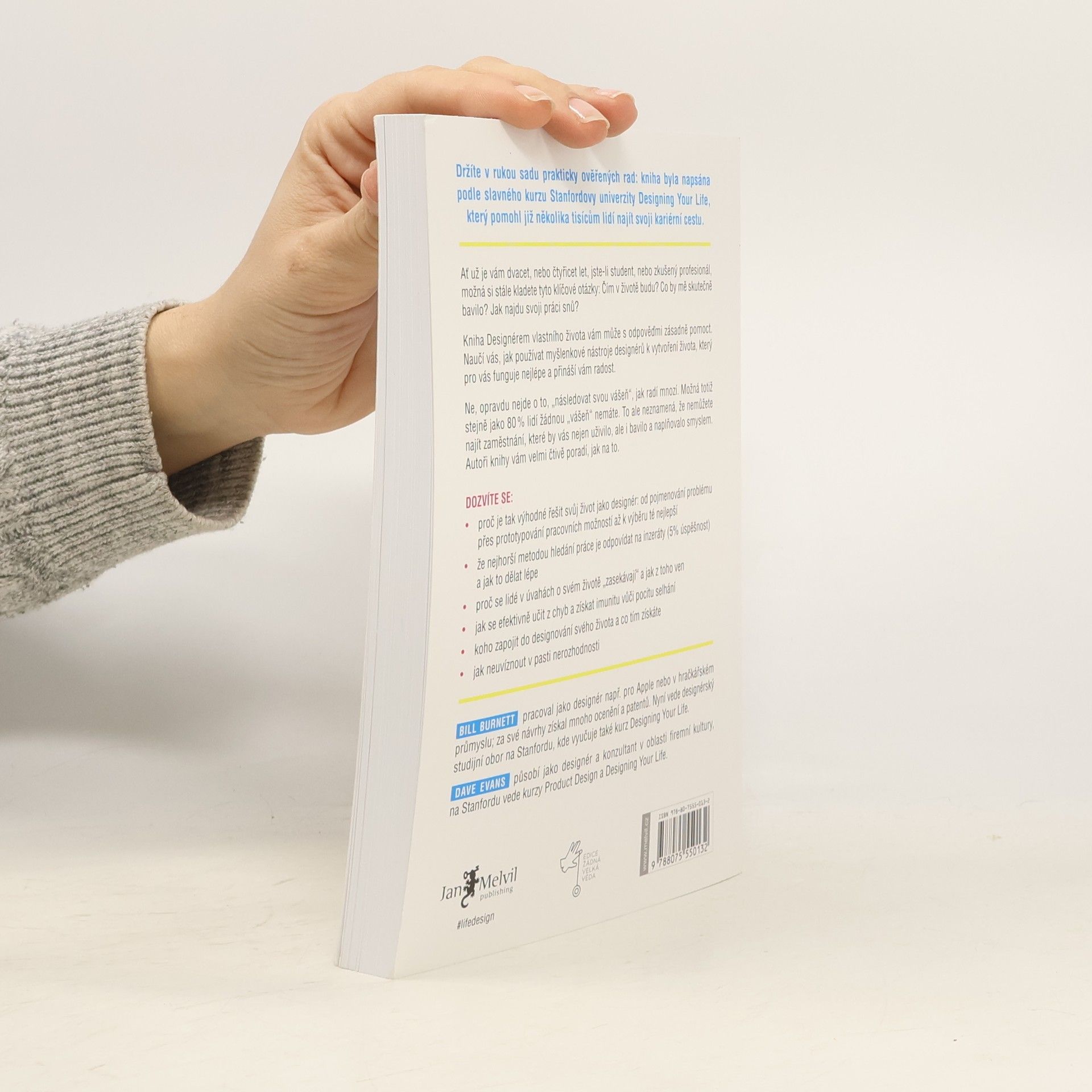 Jak si vybudovat naplňující a radostný život. Ať už jste mladí nebo starší, mnozí stále hledají odpověď na otázku, čím se stanou. Možná potřebujete pomoc při zjišťování svých cílů a způsobů, jak jich dosáhnout. Bill Burnett a Dave Evans navazují na svůj úspěšný kurz Life Design na Stanfordově univerzitě, který pomohl tisícům lidí – od studentů po důchodce – najít novou budoucnost. Jejich metoda vás naučí používat designérské nástroje k vytvoření života, jaký si představujete. Nejde o to „následovat svou vášeň“, pokud ji zatím nemáte. Designéři řeší problémy pomocí designérského myšlení. Vše kolem nás, od technologií po produkty, bylo navrženo s cílem vyřešit konkrétní problém. Autoři ukazují, jak nám toto myšlení může pomoci vytvořit smysluplný život, bez ohledu na naši minulost nebo věk. Designérské myšlení, které stojí za úžasnými inovacemi, lze využít k budování kariéry a naplňujícího života, který je kreativní, produktivní a plný překvapení. Tato kniha nevyřeší vaše problémy, to musíte udělat sami, ale může vás inspirovat k většímu úsilí při práci na lepším životě.