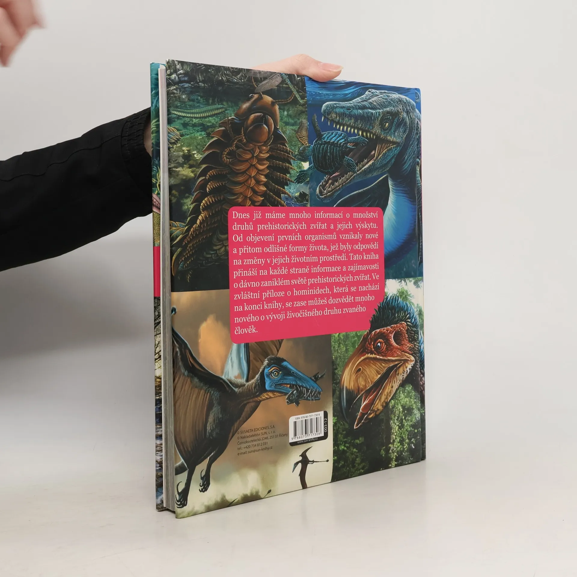 Dnes již máme mnoho informací o množství druhů prehistorických zvířat a jejich výskytu. Od objevení prvních organismů vznikaly nové a přitom odlišné formy života, jež byly odpovědí na změny v jejich životním prostředí. Tato kniha přináší na každé straně informace a zajímavosti o dávno zaniklém světě prehistorických zvířat. Ve zvláštní příloze o hominidech, která se nachází na konci knihy, se zase můžeš dozvědět mnoho nového o vývoji živočišného druhu zvaného člověk.