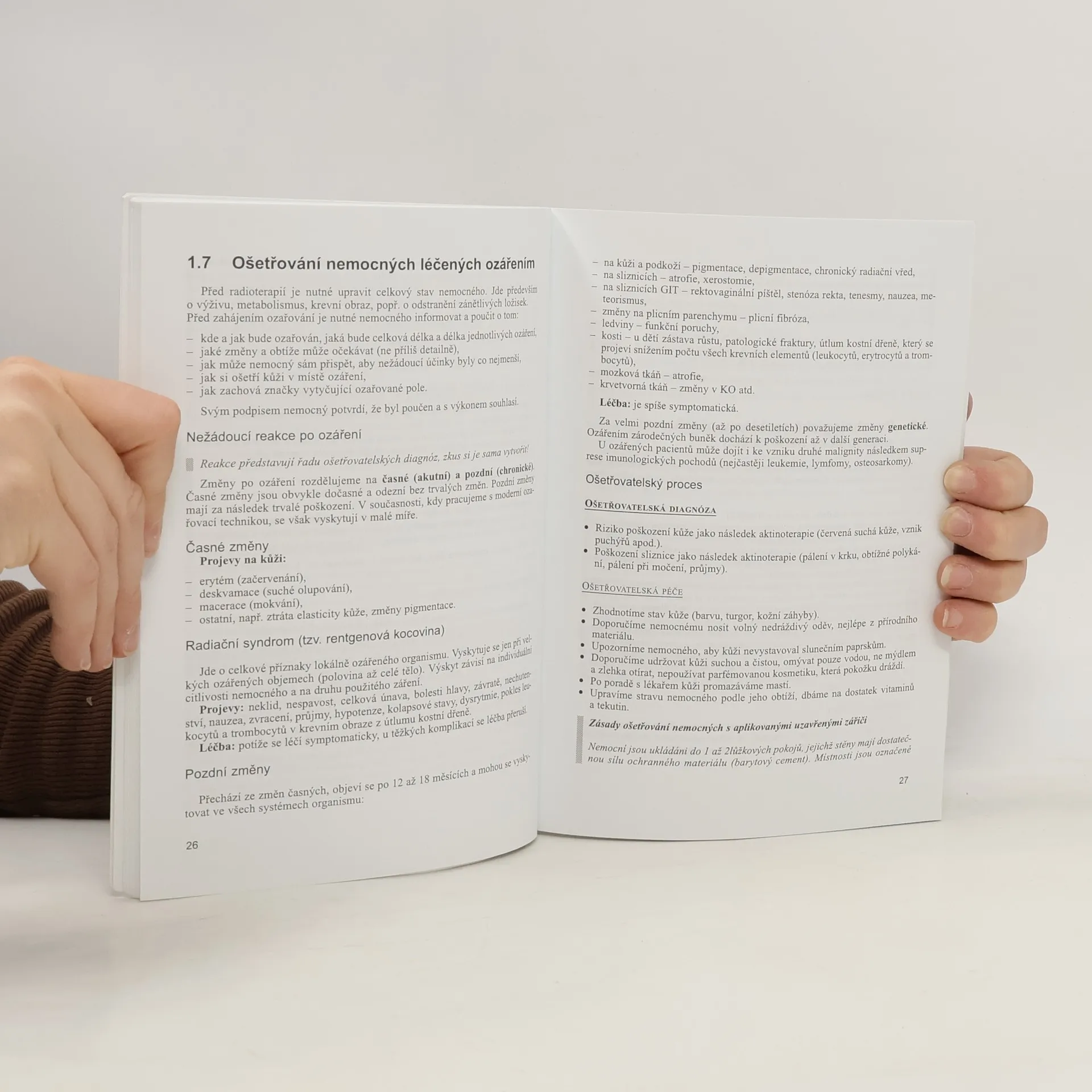 Ošetřovatelský proces na onkologickém, očním, ortopedickém a stomatologickém oddělení, včetně charakteristik jednotlivých onemocnění. Práce sestry v terénu, dětských zařízeních a léčebných ústavech.