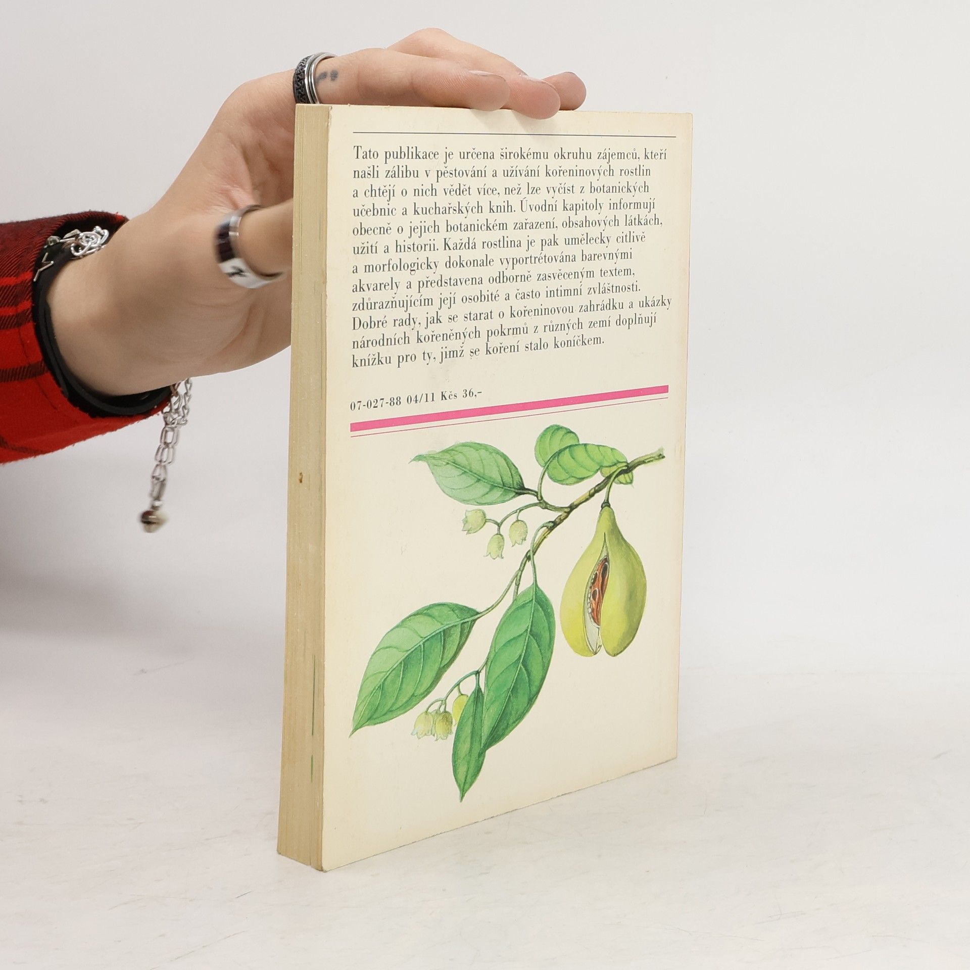 Tato publikace je určena širokému okruhu zájemců, kteří našli zálibu v pěstování a užívání kořeninových rostlin a chtějí o nich vědět více, než lze vyčíst z botanických učebnic a kuchařských knih. Úvodní kapitoly informují obecně o jejich botanickém zařazení, obsahových látkách, užití a historii. Každá rostlina je pak umělecky citlivě a morfologicky dokonale vyportrétována barevnými akvarely a představena odborně zasvěceným textem, zdůrazňujícím její osobité a často intimní zvláštnosti. Dobré rady, jak se starat o kořeninovou zahrádku a ukázky národních kořeněných pokrmů z různých zemí doplňují knížku pro ty, jimž se koření stalo koníčkem.