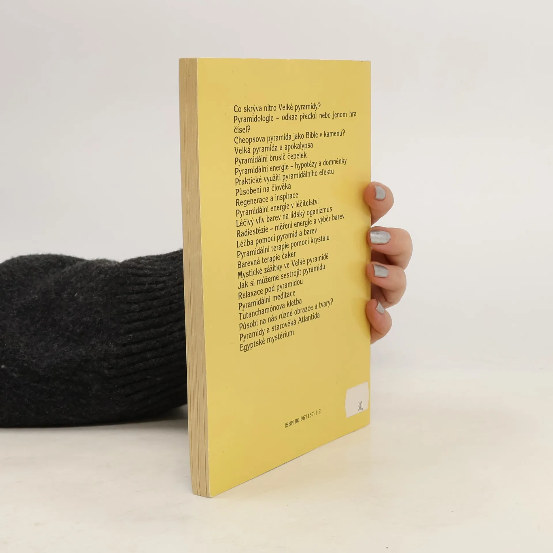 Co skrývá vnitro Veké pyramidy? Pyramidologia odkaz předků anebo jen hra čísel? Cheopsova pyramida jako bible v kameni. Velká pyramida a apokalypsa. Pyramidiální brusič čepelí. Pyramidiální energie, hypotézy a domněnky. Praktické využití pyramidiálního efektu. Působení na člověka. Pyramidiální energie v léčitelství. Relaxace pod pyramidou.
