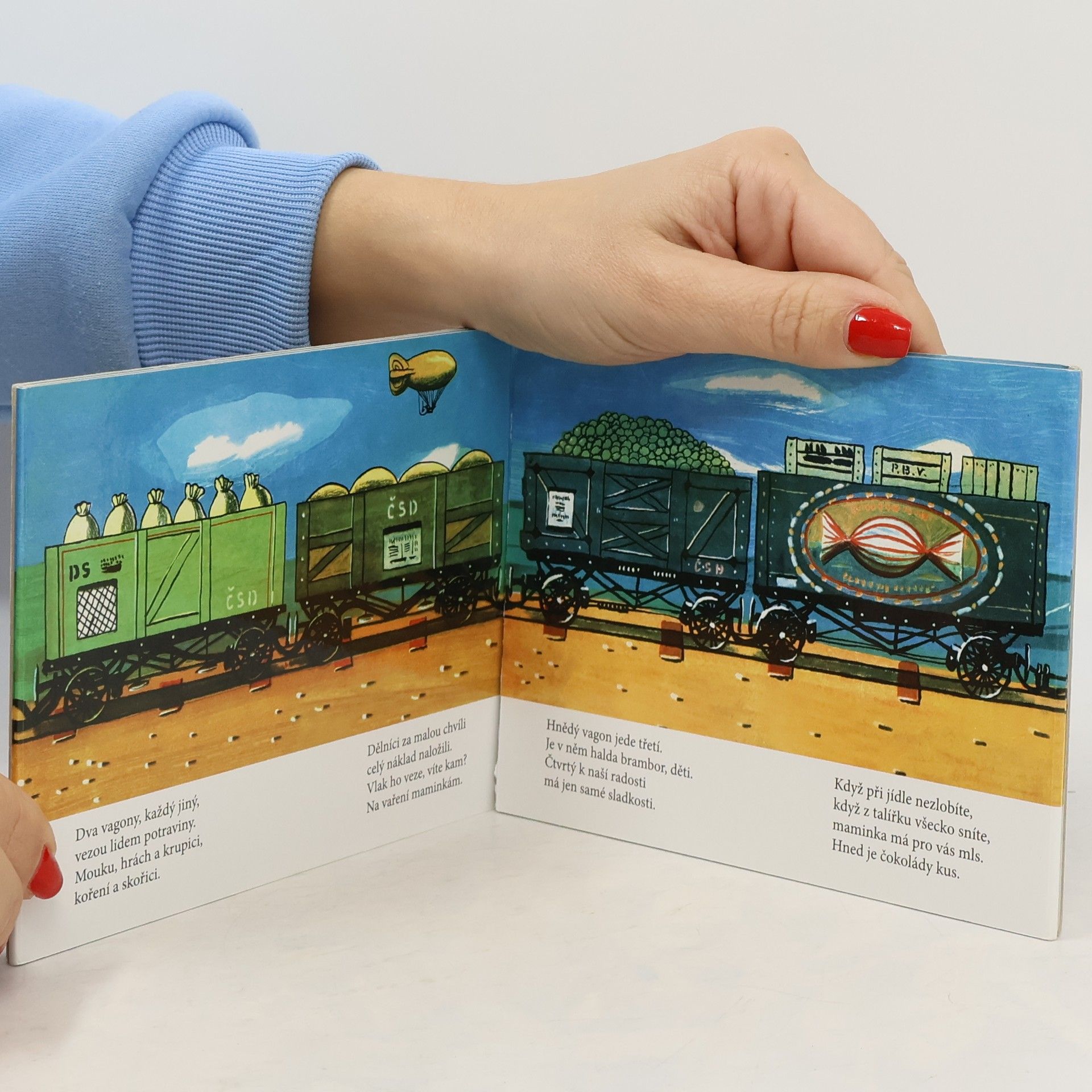 Po kolejích jede vláček, rychlý vláček – náklaďáček. Od nádraží k nádraží různé zboží rozváží. Leporelo s dlouhým nákladním vlakem Kamila Lhotáka zaujme každého malého kluka. A protože jde o vlak s parní lokomotivou, určitě zaujme i tatínky, kteří svým potomkům jistě rádi vysvětlí, že dnes už takový vlak uvidí na kolejích jen výjimečně, protože technika se od prvního vydání této knížky (rok 1954!) velmi výrazně zdokonalila a zmodernizovala. Obrázky doprovázejí verše Josefa Hiršala.