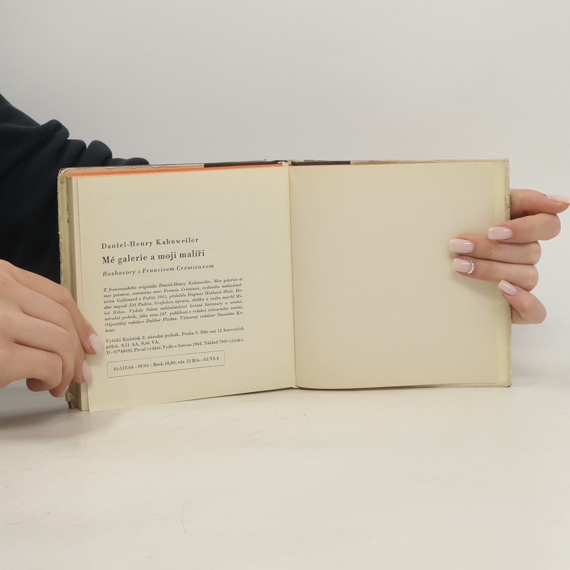 Mé galerie a moji malíři: rozhovory s Francisem Crémieuxem Formou rozhovorů psané paměti pařížského obchodníka s obrazy, který svým zaujetím pro kubismus a kubisty v čele s Picassem a Braquem pomáhal probojovávat nový umělecký směr. Kniha poví mnoho o malířích a obrazech i době mezi dvěma světovými válkami a upoutá i úvahami o teorii a praxi umění. Boj o umění, a zejména boj o nové umění, nevedli nikdy jen sami umělci. Právě tak vždy vysvětlovali, hájili a prosazovali každou uměleckou revoluci její kritici a její nadšenci a sběratelé. A vedle nich pak ještě – a to platí především o světových kulturních střediscích – organisovali vítězství nového umění i někteří výjimeční a tím nemnozí obchodníci s obrazy: A. Vollard, Durand-Ruel, Kahnweiler. Vollard a Durand-Ruel byli impresarii impresionistů. Kahnweiler dělal kubisty – Picassa, Braqua, Grise, Légera, počátky Deraina a Vlamincka. Je proto jeho vzpomínání plné neobyčejně zajímavých drobných poznatků a svědectví o těchto lidech, které Kahnweiler všechny dobře znal a s nimiž nadto žil v přátelských vztazích, spolu s básníky a literáty. Avšak kromě kulturní atmosféry a historických zajímavostí jsou tu prostou formou rozhovoru podány i zajímavé zásadní a teoretické myšlenky o umění, o jeho vývoji, o jeho srozumitelnosti a „nesrozumitelnosti", a zejména o tom, co je podstatné na umělecké revoluci kubismu. Doslov Jiří Padrta.