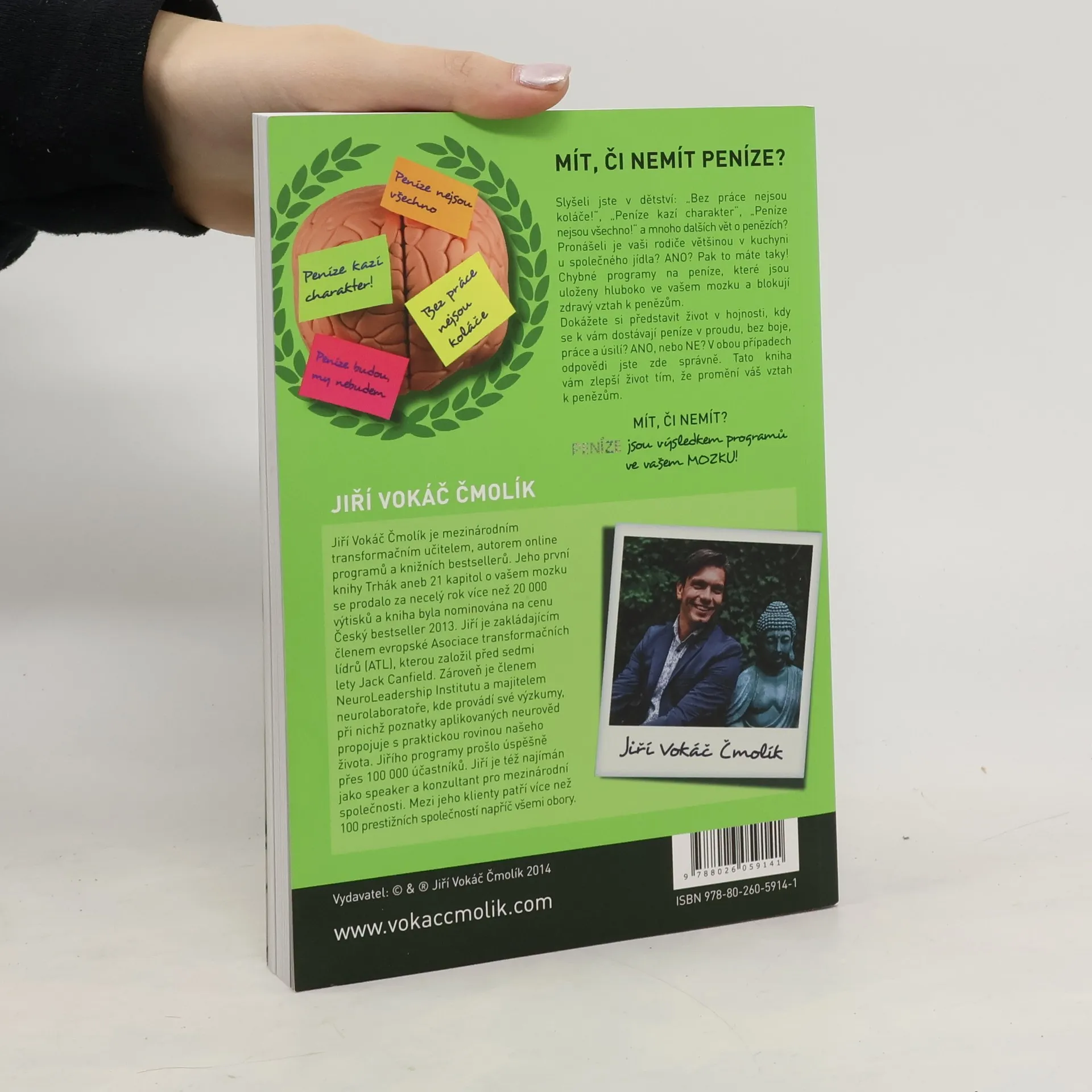 Nová kniha z pera Jiřího Vokáče Čmolíka mapuje programy v mozku, které se dotýkají oblasti peněz a prosperity. Autor ve své knize vychází z dlouhodobého výzkumu založeného na moderních technikách neurověd a dále shrnuje své studie v rámci programu NEURO RESTART ® Peníze. Populární formou čtenáři zprostředkovává každodenní situace a naučené stereotypy, vyplývajících z programů v našem mozku. Odhaluje programovou chybu, která nás blokuje na úrovni přijímání peněz. Některé z kapitol, jako Peníze a spiritualita jsou přímo až výbušné. Mít, či nemít? PENÍZE nabízí návod, který staré programy maže a zároveň restartuje mozek. Techniky, které jsou zde představeny, nabídnou čitateli nový pohled na peníze a zároveň nastaví „silný vysílač“, který otevře srdce pro získání a přijímání peněz. Kniha se postupem času se stává užitečnou každodenní příručkou a průvodcem na dobrodružné cestě za hojností a finanční nezávislostí. jsou výsledkem programů ve vašem MOZKU!