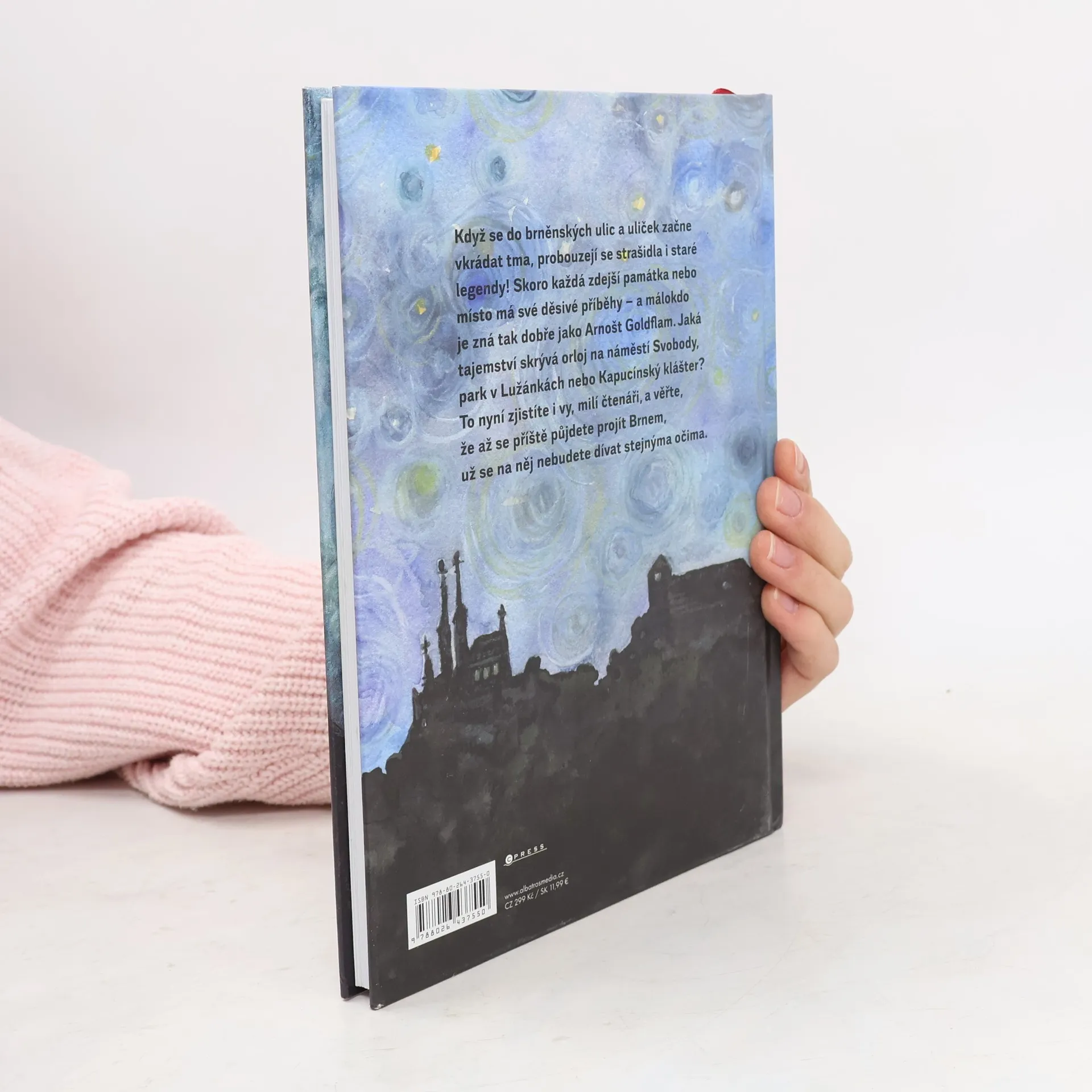 Husí kůže zaručena! Patnáct strašidelných příběhů pro děti i rodiče. Když se do brněnských ulic a uliček začne vkrádat tma, probouzejí se strašidla i staré legendy! Skoro každá zdejší památka nebo místo má své děsivé příběhy – a málokdo je zná tak dobře jako Arnošt Goldflam. Jaká tajemství skrývá orloj na náměstí Svobody, park v Lužánkách nebo Kapucínský klášter? To nyní zjistíte i vy, milí čtenáři, a věřte, že až se příště půjdete projít Brnem, už se na něj nebudete dívat stejnýma očima. Moji milí čtenáři, děti a rodiče, když jsem ještě bydlel v Brně a hlavně když jsem byl ještě děcko, býval jsem velký snílek. Představoval jsem si různé dobrodružné a strašidelné historie a rodičům jsem tvrdil, že jsem to doopravdy zažil, a taky jsem si to mnohdy myslel. V téhle knížce jsem si na to všechno vzpomněl a všechny ty příhody jsem pro Vás sepsal. Srdečně Váš Arnošt Goldflam