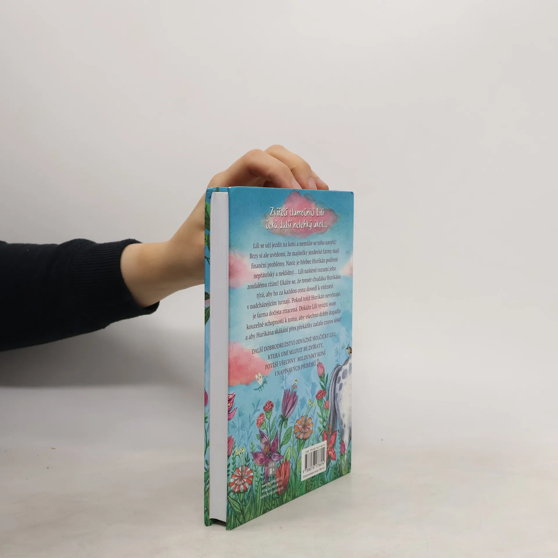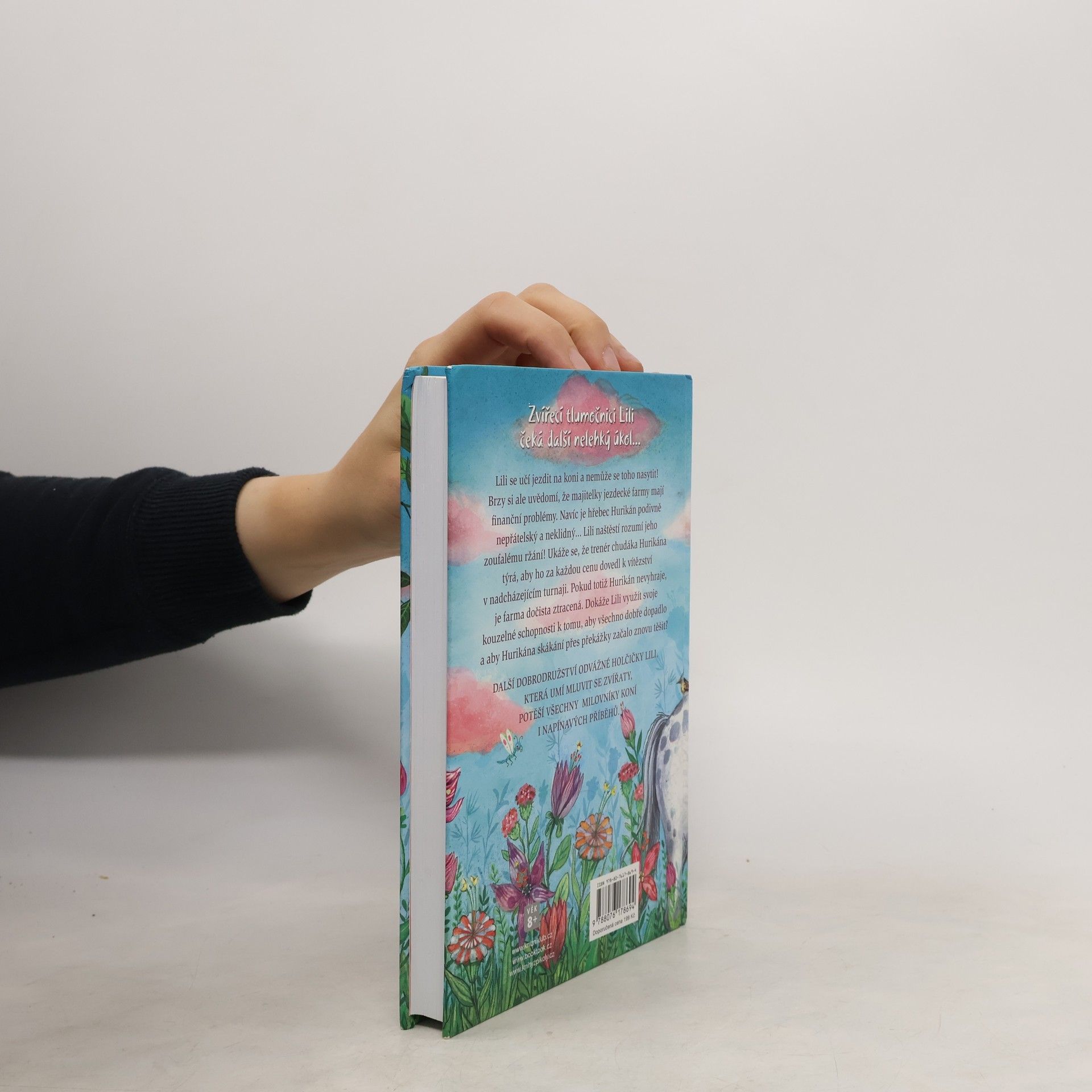 Lili se učí jezdit na koni a nemůže se toho nasytit! Brzy si ale uvědomí, že majitelky jezdecké farmy mají finanční problémy. Navíc je hřebec Hurikán podivně nepřátelský a neklidný… Lili naštěstí rozumí jeho zoufalému ržání! Ukáže se, že trenér chudáka Hurikána brutálně týrá, aby ho za každou cenu dovedl k vítězství v nadcházejícím turnaji. Pokud totiž Hurikán nevyhraje, je farma dočista ztracená. Dokáže Lili využít svoje kouzelné schopnosti k tomu, aby všechno dobře dopadlo a aby Hurikána skákání přes překážky začalo znovu těšit? Další díl oblíbené série o statečné Lili, která dokáže mluvit se zvířaty, je určená čtenářkám od 8 let.