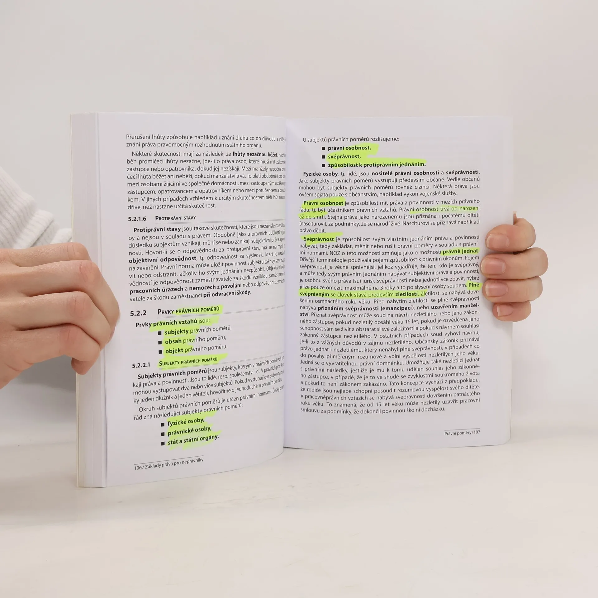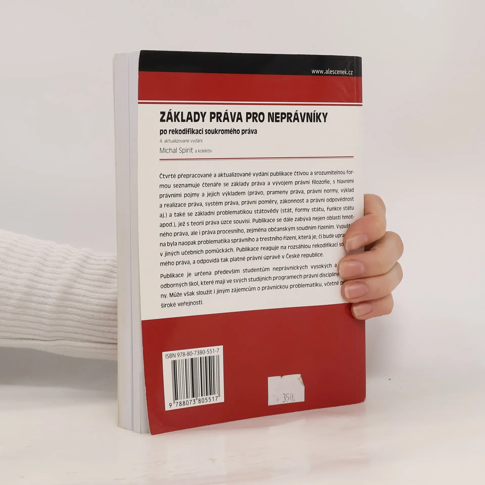 Čtvrté přepracované a aktualizované vydání publikace čtivou a srozumitelnou formou seznamuje čtenáře se základy práva a vývojem právní filozofie, s hlavními právními pojmy a jejich výkladem (právo, prameny práva, právní normy, výklad a realizace práva, systém práva, právní poměry, zákonnost a právní odpovědnost aj.) a také se základní problematikou státovědy (stát, formy státu, funkce státu apod.), jež s teorií práva úzce souvisí. Publikace se dále zabývá nejen oblastí hmotného práva, ale i práva procesního, zejména občanským soudním řízením. Vypuštěna naopak byla problematika správního a trestního řízení, která je, či bude upravena v jiných učebních pomůckách. Publikace reaguje na rozsáhlou rekodifikaci soukromého práva a odpovídá tak platné právní úpravě v České republice. Publikace je určena především studentům neprávnických vysokých a vyšších odborných škol, které mají ve svých studijních programech právní disciplíny zařazeny. Může však sloužit i jiným zájemcům o právnickou problematiku, včetně potřeb široké veřejnosti.