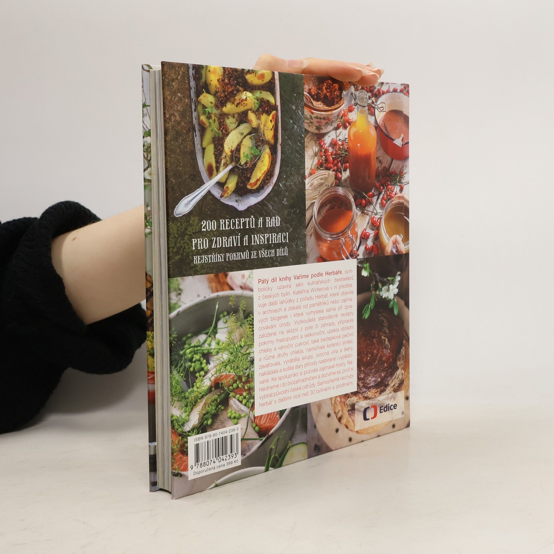 Pátý díl knihy Vaříme podle Herbáře symbolicky uzavírá sérii kulinářských bestsellerů z českých bylin. Kateřina Winterová v ní s Lindou Rybovou představuje další lahůdky z pořadu Herbář, které objevila v archivech a získala od pamětníků nebo zajímavých blogerek i které vymyslela sama při zpracovávání úrody. Vyzkoušela starodávné recepty založené na sklizni z pole či zahrady, na pokrmy masopustní a velikonoční dobroty, na obřadní chleby a vánoční cukroví, ale také na bezlepkové pečivo a různé druhy chleba, připravila kořenicí směsi, zavařovala, nakládala a sušila dary přírody nasbírané i vypěstované. Kniha by nebyla úplná bez bylinných zavařenin, sirupů, tinktur, ovocných vín a likérů. Kromě vaření s bylinami nahlédneme také do biozahradničení a dozvíme se, proč si vybírat původní české odrůdy. Samozřejmě nechybí herbář s dalšími více než 30 bylinami a plodinami. Všichni, kteří vaří podle Herbáře, jistě ocení rejstříky pokrmů ze čtyř předchozích knih.