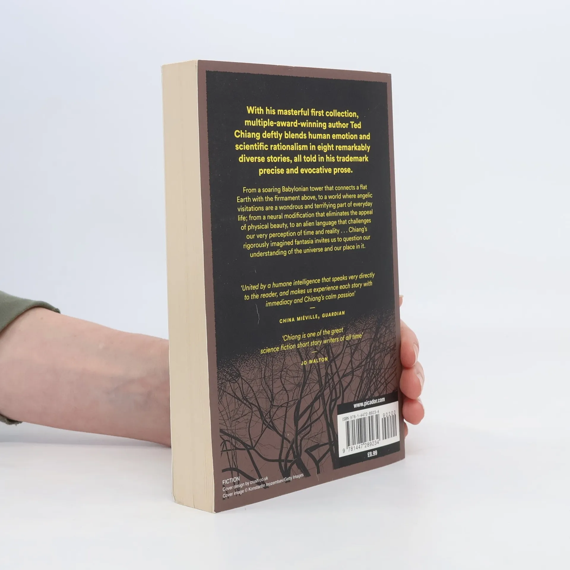 With his masterful first collection, multiple-award-winning author Ted Chiang deftly blends human emotion and scientific rationalism in eight remarkably diverse stories, all told in his trademark precise and evocative prose. From a soaring Babylonian tower that connects a flat Earth with the firmament above, to a world where angelic visitations are a wondrous and terrifying part of everyday life; from a neural modification that eliminates the appeal of physical beauty, to an alien language that challenges our very perception of time and reality. . . Chiang's rigorously imagined fantasia invites us to question our understanding of the universe and our place in it.