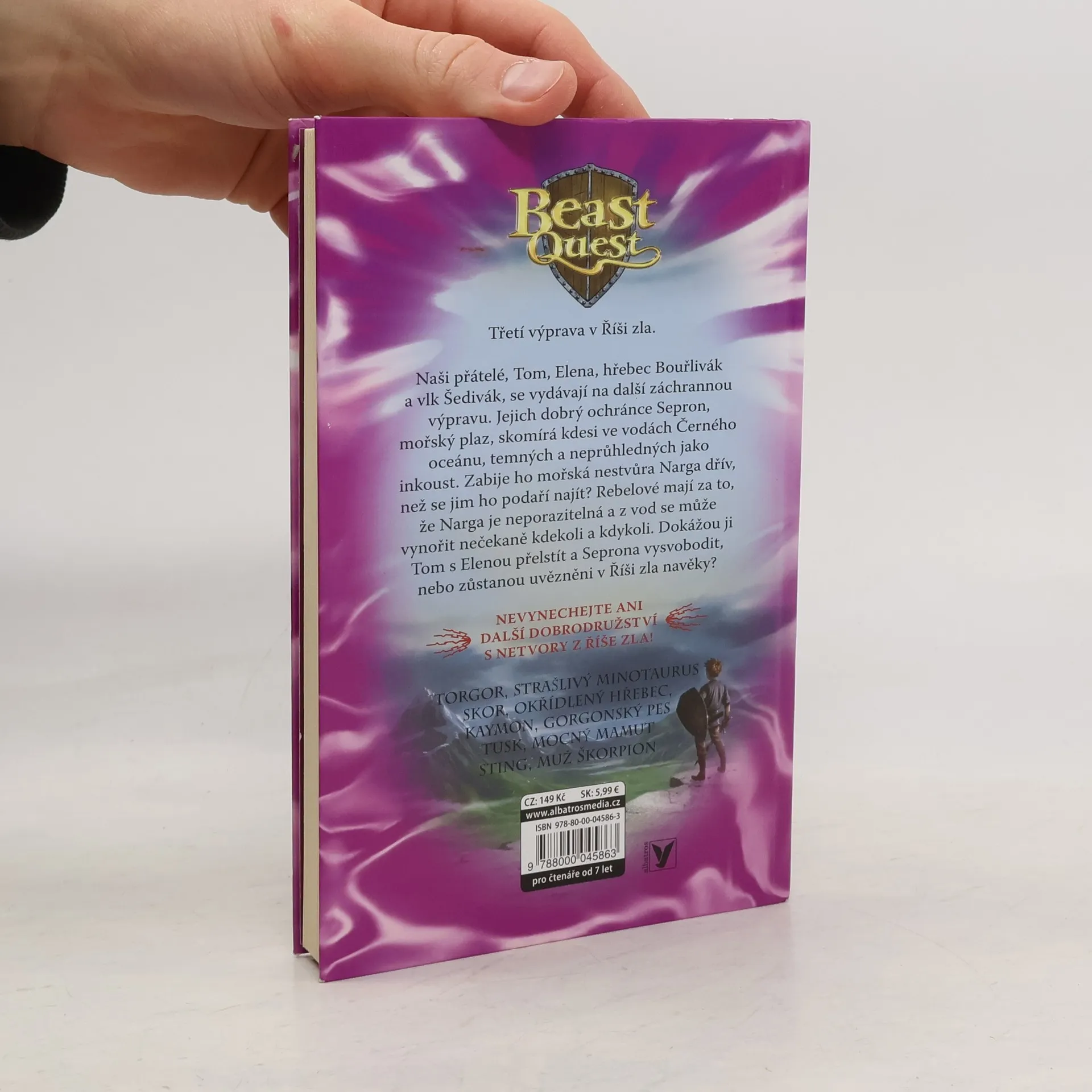 Naši přátelé, Tom, Elena, hřebec Bouřlivák a vlk Šedivák, se vydávají na další záchrannou výpravu. Jejich dobrý ochránce Sepron, mořský plaz, skomírá kdesi ve vodách Černého oceánu, temných a neprůhledných jako inkoust. Zabije ho mořská nestvůra Narga dřív, než se jim ho podaří najít? Rebelové mají za to, že Narga je neporazitelná a z vod se může vynořit nečekaně kdekoli a kdykoli. Dokážou ji Tom s Elenou přelstít a Seprona vysvobodit, nebo zůstanou uvězněni v Říši zla navěky?