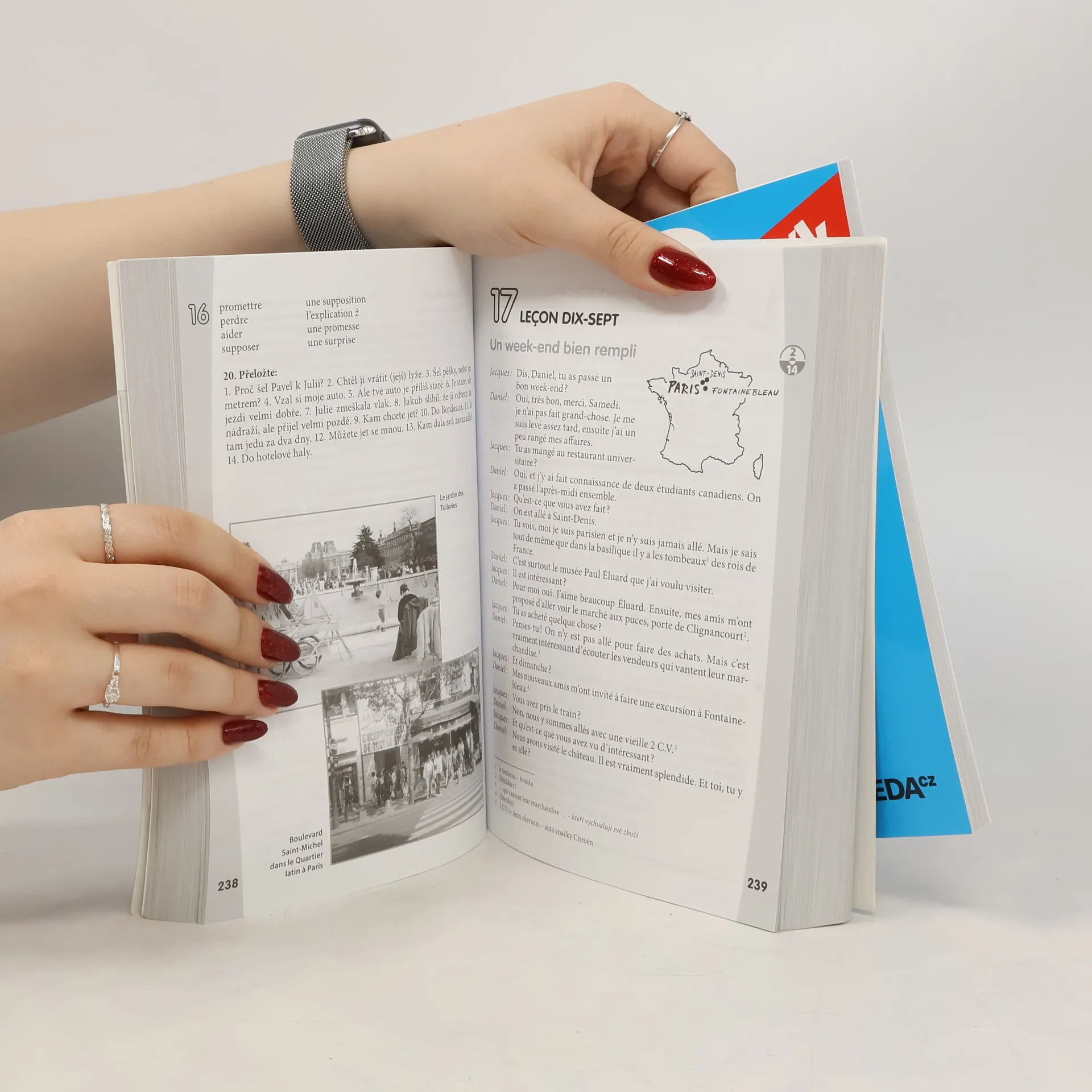 Aktualizovaná a doplněná verze oblíbené učebnice určené samoukům, účastníkům jazykových kurzů, studentům i „věčným“ začátečníkům, kteří si potřebují osvěžit své znalosti. Učebnice má 35 lekcí a každá obsahuje úvodní text, slovíčka, frazeologismy i francouzské reálie spjaté s každodenním životem. Následuje mluvnická část, na niž navazují cvičení. Výslovnost a pravopis jsou probírány v prvních 15 lekcích, každý fonetický jev je důkladně procvičen. Součástí učebnice je jednak brožura s klíčem ke cvičením a francouzsko-českým slovníčkem, jednak dvě audio CD, na nichž rodilí mluvčí nahráli úvodní texty, dialogy, všechna fonetická a vybraná mluvnická cvičení. Pokud uživatel poctivě prostuduje celou učebnici, měly by jeho jazykové znalosti odpovídat nejlepšímu maturitnímu průměru. 1. vydání.