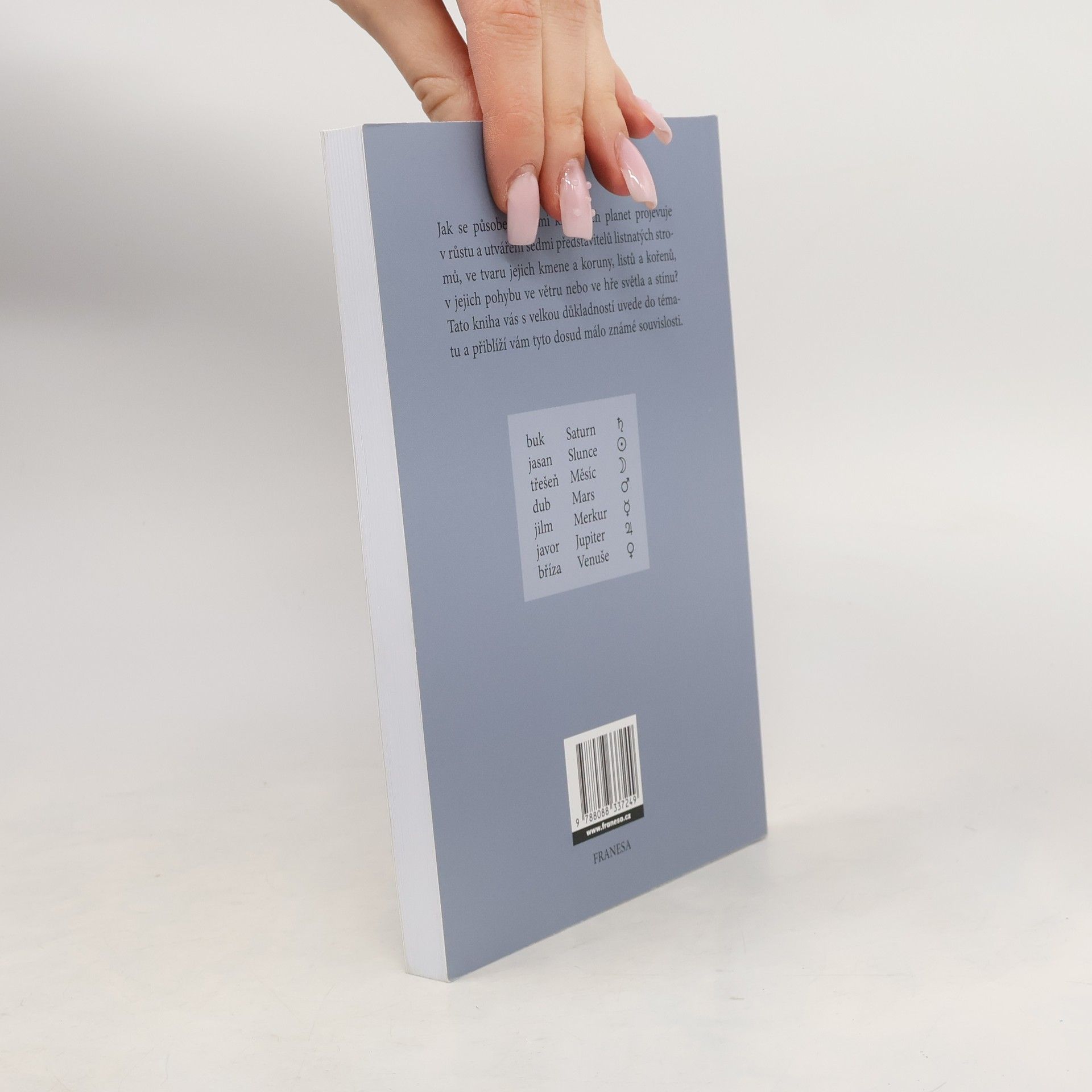 Jaká existuje souvislost mezi dubem a Marsem, břízou a Venuší, jasanem a Sluncem? Pro přírodu jsou často důležitější zcela jiné jevy než ty, kterých jsme zvyklí si všímat. Naučme se poznávat růstová gesta a životní projevy stromů, vcítit se do nich, využívat sil imaginace a výsledky pozorování propojit s kvalitami jednotlivých planet. Tato jedinečná kniha je klíčem k této dosud neodemčené bráně.