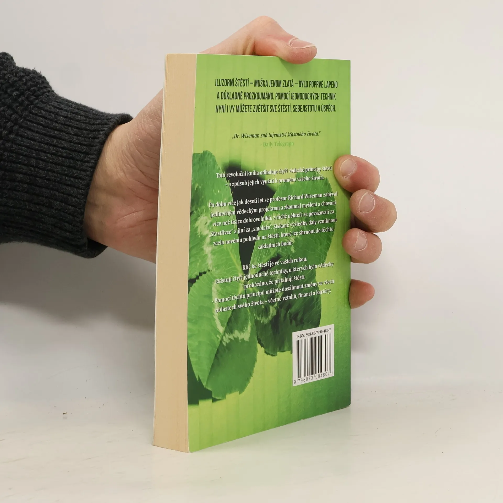 Vědecká studie šťastné mysly Proč jsou někteří lidé úspěšní a šťastní, zatímco život jiných je samý nezdar a smutek? Proč někteří najdou dokonalého partnera, zatímco jiní se potácejí od jednoho vztahu k druhému? Co umožňuje některým lidem vybudovat úspěšnou kariéru, zatímco jiní vykonávají práci, kterou nemají rádi? A může nešťastný člověk udělat něco pro zlepšení svého života? Může si naklonit štěstí na svou stranu? Před dvaceti lety se profesor Richard Wiseman rozhodl zkoumat zdánlivě nepolapitelné faktory štěstí tím, že zaznamenával názory, pocity a zkušenosti šťastných i nešťastných lidí. Výsledkem je radikálně nový způsob nahlížení na štěstí. V této knize Wiseman identifikuje a popisuje čtyři jednoduché behaviorální techniky, které byly vědecky prokázané, jež vám pomohou přilákat štěstí. A dále vám ukáže, jak tyto metody můžete použít doslova k revoluci v každé oblasti vašeho života - včetně vztahů, osobních financí a kariéry.