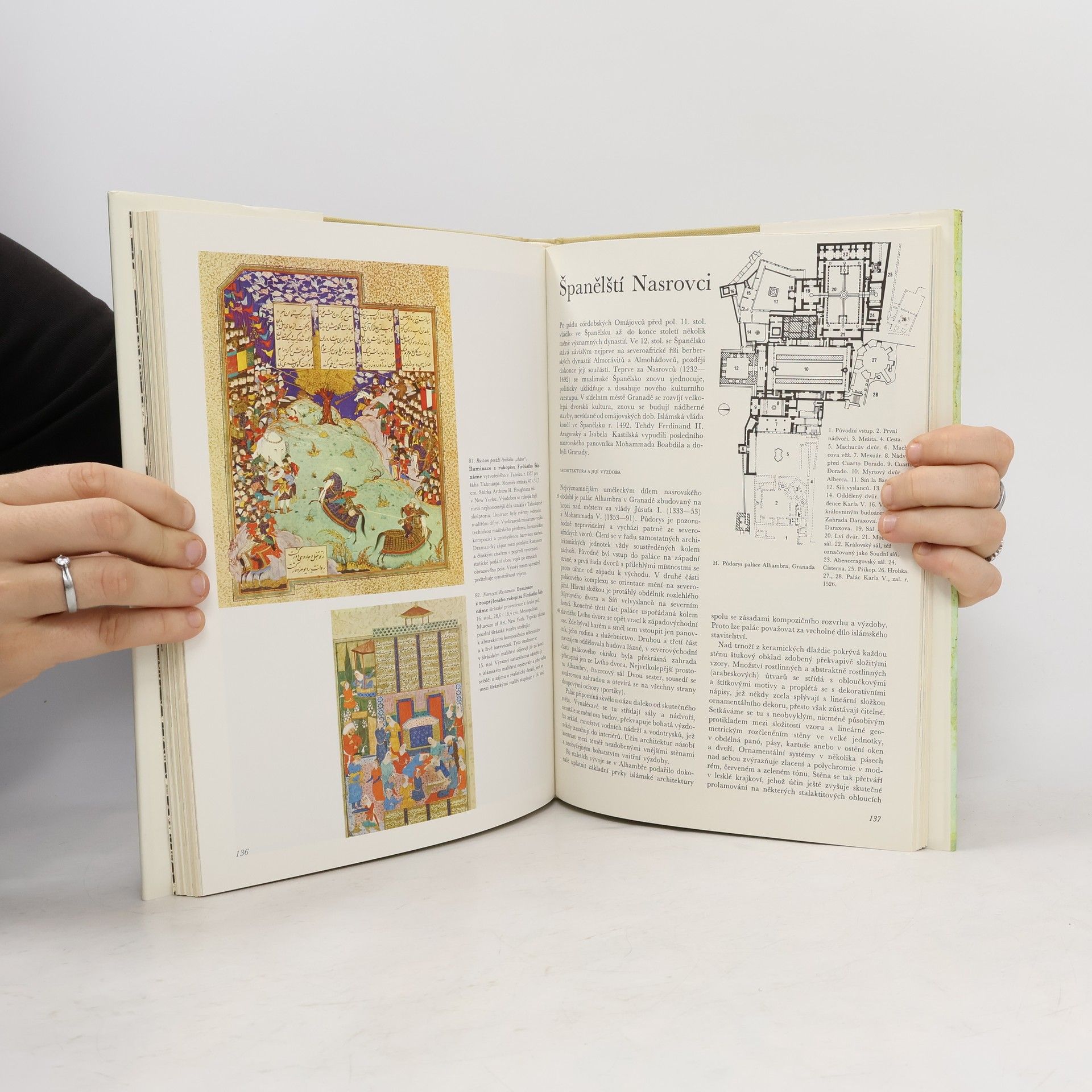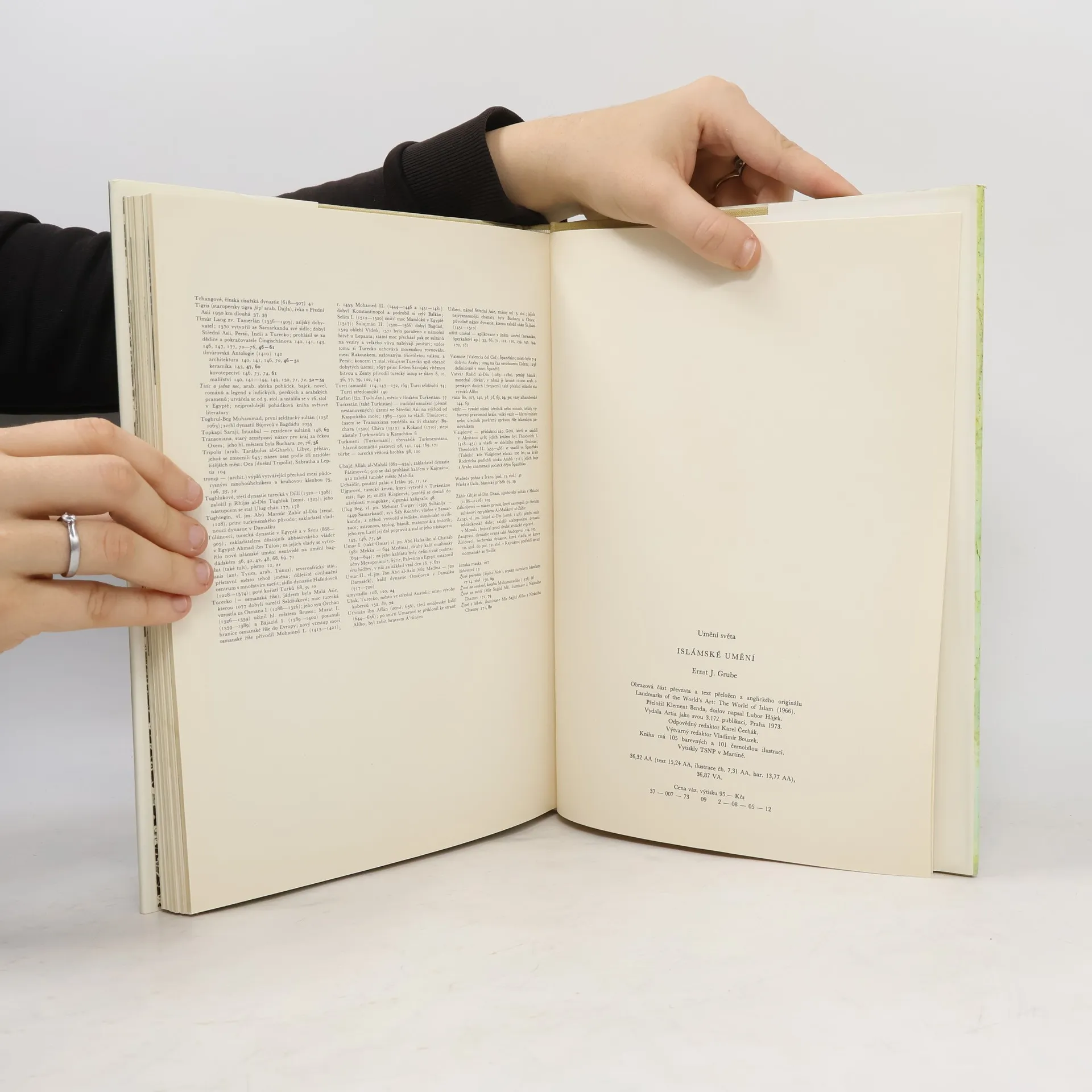 Uměleckohistorická práce o hlavních vývojových tendencích islámského umění, vyrůstajícího z předislámských tradic podrobených zemí a z arabských, perských a tureckých prvků, demonstruje bohatství a rozmanitost jeho projevů v architektuře, malířství, keramice, kovu, řezbě, kobercíchaj. Látka je rozčleněna podle jednotlivých dynastií, jež ovládaly části původně jednotné muslimské říše. 105 barevných a 101 černobílých ilustrací. – Doslov Lubor Hájek.
