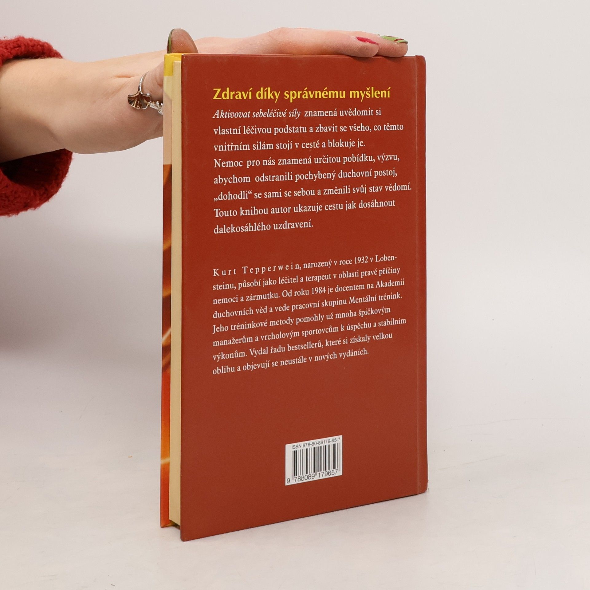 Aktivovat sebeléčivé síly znamená uvědomit si vlastní léčivou podstatu a začít se zbavovat všeho, co těmto vnitřním léčivým silám stojí v cestě a blokuje je. Nemoc pro nás znamená určitou pobídku, výzvu, abychom odstranili pochybený duchovní postoj, "dohodli" se sami se sebou a změnili svůj stav vědomí. Touto knihou autor ukazuje cestu jak dosáhnout dalekosáhlého uzdravení. Kurt Tepperwein, narozený v roce 1932 v Lobensteinu, působí jako léčitel a terapeut v oblasti pravé příčiny nemoci a zármutku. Od roku 1984 je docentem na Akademii duchovních věd a vede pracovní skupinu Mentální trénink. Jeho tréninkové metody pomohly už mnoha špičkovým manažerům a vrcholovým sportovcům k úspěchu a stabilním výkonům. Vydal řadu bestsellerů, které si získaly velkou oblibu a objevují se neustále v nových vydáních.
