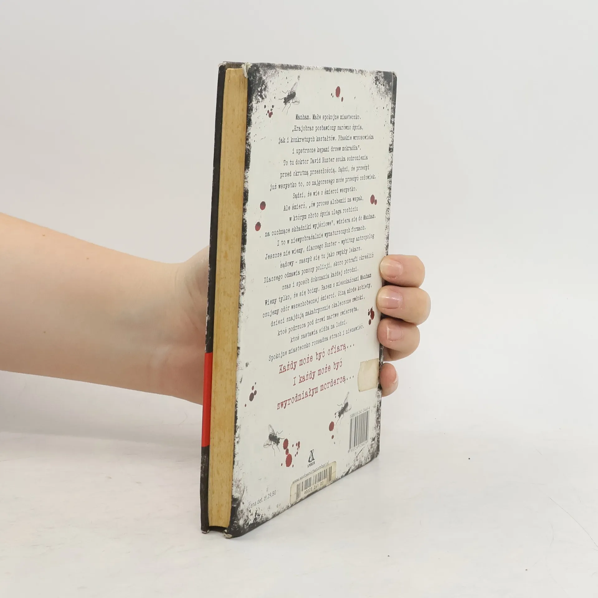 Tom 1 serii z doktorem Davidem Hunterem, wybitnym antropologiem sądowym, kt�ry skłania zmarłych do zwierzeń w literackich thrillerach, kt�re budzą paniczny strach i poruszają najgłębsze emocje milion�w czytelnik�w.Manham. Małe spokojne miasteczko. ?Krajobraz pozbawiony zar�wno życia, jak i konkretnych kształt�w. Płaskie wrzosowiska i upstrzone kępami drzew mokradła?.To tu doktor David Hunter szuka schronienia przed okrutną przeszłością.Sądzi, że przeżył już wszystko to, co najgorszego może przeżyć człowiek, sądzi, że wie o śmierci wszystko. Ale śmierć, ?�w proces alchemii na wspak, w kt�rym złoto życia ulega rozbiciu na cuchnące składniki wyjściowe?, wdziera się do Manham. I to w niewyobrażalnie wynaturzonych formach. Jeszcze nie wiemy, dlaczego Hunter ? wybitny antropolog sądowy ? zaszył się tu jako zwykły lekarz. Dlaczego odmawia pomocy policji, skoro potrafi określić czas i spos�b dokonania każdej zbrodni. Wiemy tylko, że się boimy. Razem z mieszkańcami Manham czujemy od�r wszechobecnej śmierci. Giną młode kobiety, dzieci znajdują makabrycznie okaleczone zwłoki, ktoś podrzuca pod drzwi martwe zwierzęta, ktoś zastawia sidła na ludzi. Spokojne miasteczko rozsadza strach i nienawiść. Każdy może być ofiarą... I każdy może być zwyrodniałym mordercą...
