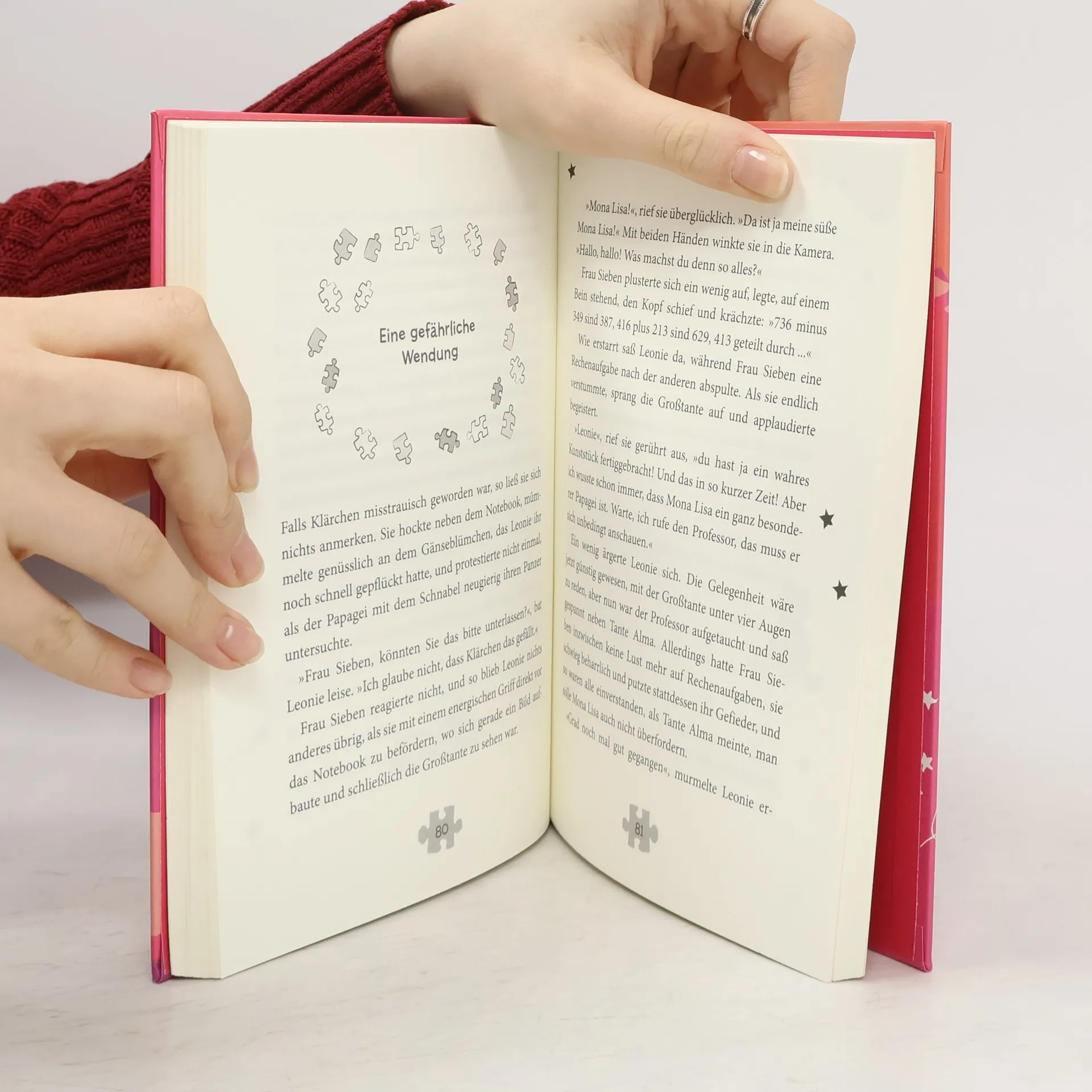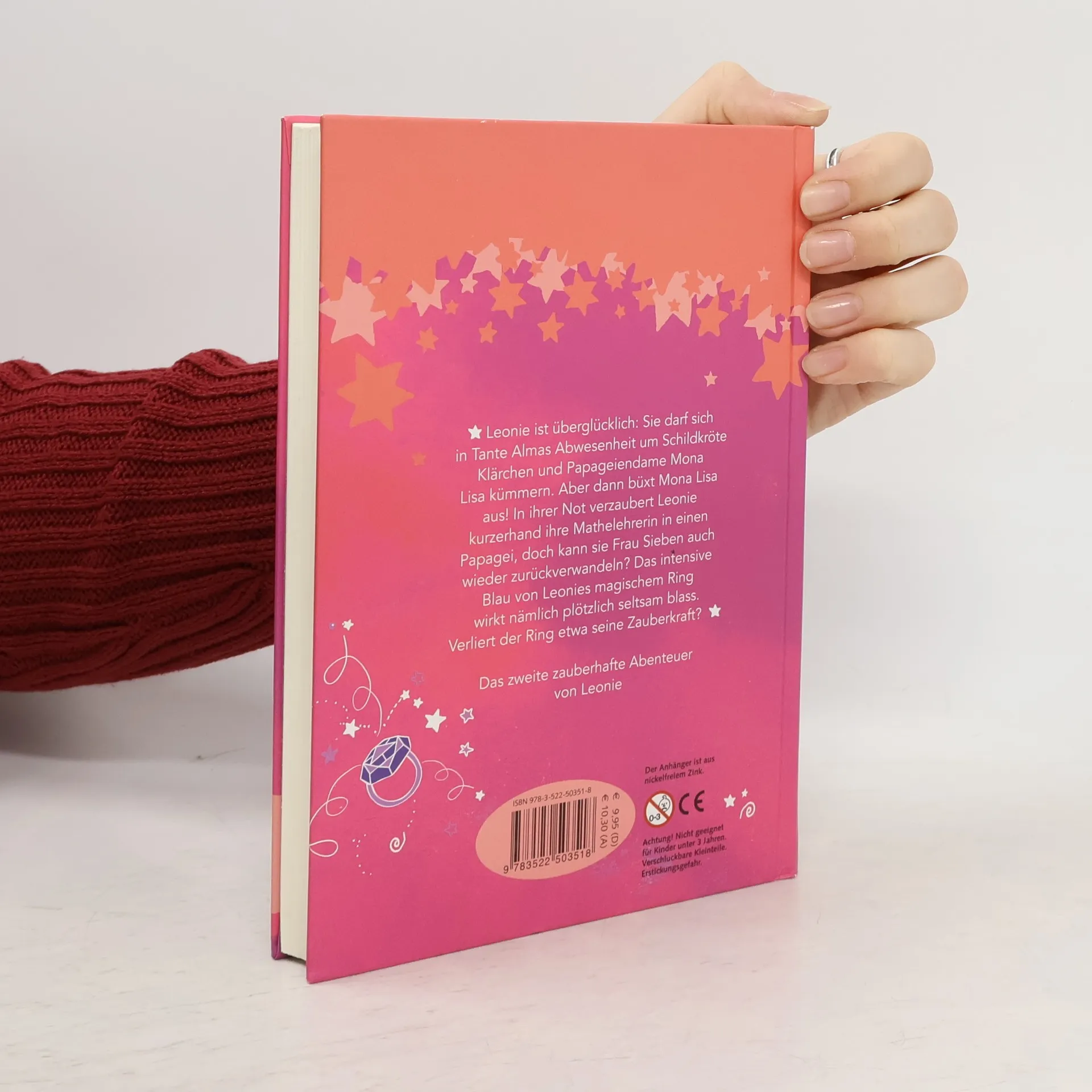 Leonie ist überglücklich: Sie darf sich in Tante Almas Abwesenheit um Schildkröte Klärchen und Papageiendame Mona Lisa kümmern. Aber dann büxt Mona Lisa aus! Per Skype möchte die Großtante jedoch regelmäßig einen Blick auf ihre geliebten Tiere werfen. Leonie hat daher keine Wahl und verwandelt kurzerhand ihre Mathelehrerin Frau Sieben in einen Papagei. Doch das intensive Blau von Leonies Zauberring wirkt plötzlich seltsam blass, und sie braucht mehrere Anläufe, um die Rückverwandlung durchzuführen. Verliert der Ring etwa seine Zauberkraft?
