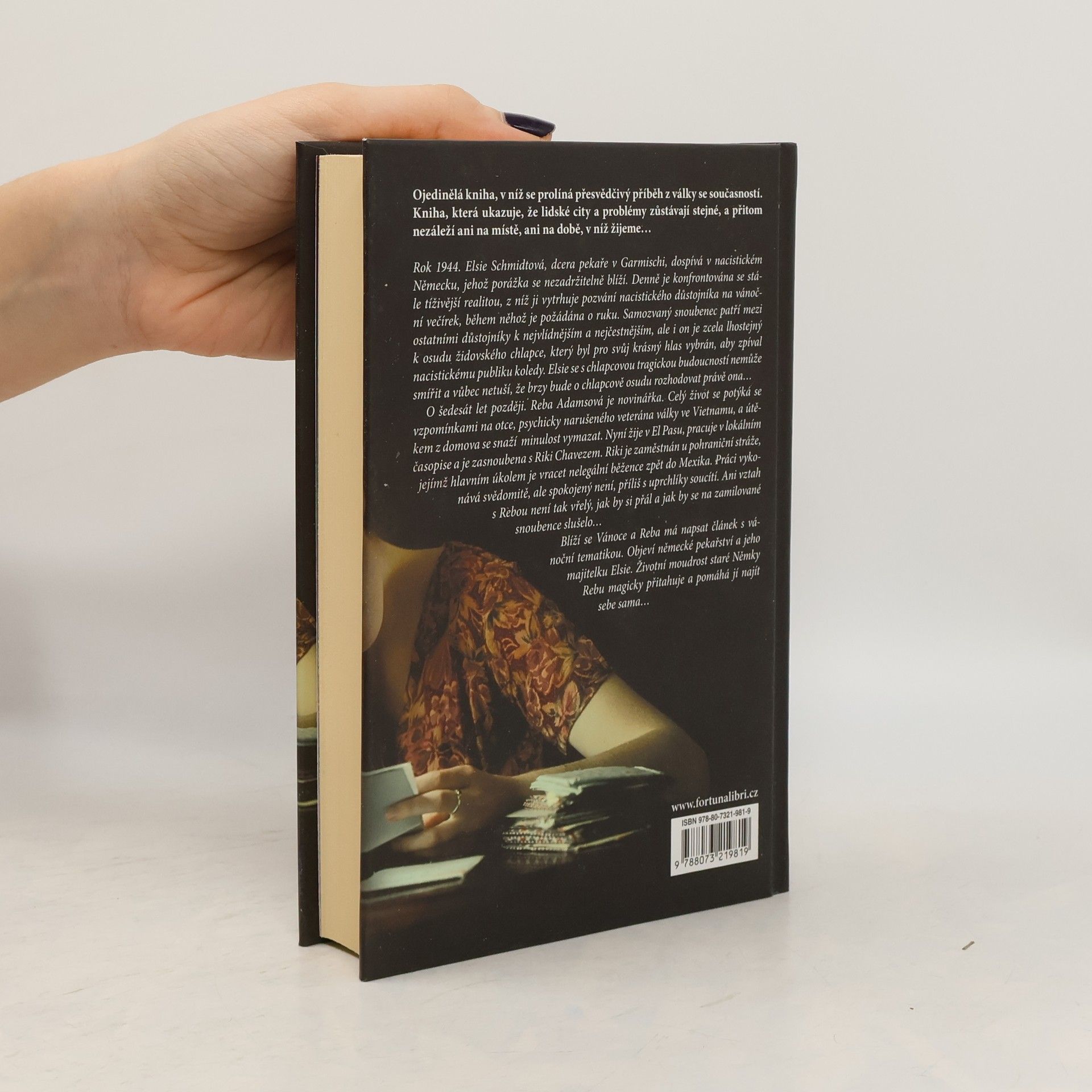 Ojedinělá kniha prolíná příběh z války se současností, ukazující, že lidské city a problémy zůstávají stejné bez ohledu na čas a místo. V roce 1944 dospívá Elsie Schmidtová, dcera pekaře v nacistickém Německu, v době blížící se porážky. Denně čelí tíživé realitě, ale pozvání nacistického důstojníka na vánoční večírek ji vytrhuje z každodenního stresu. S obavami přijímá, neboť odmítnutí by mohlo ohrozit její rodinu. Na večírku je požádána o ruku, ačkoliv její snoubenec, ač milý a čestný, je lhostejný k osudu židovského chlapce, vybraného k zpěvu pro nacistické publikum. Elsie se s chlapcovou tragédií nemůže smířit a netuší, že brzy bude o jeho osudu rozhodovat právě ona. O šedesát let později se novinářka Reba Adamsová snaží vyrovnat s traumatem z dětství, kdy její otec, veterán z Vietnamu, trápil rodinu svými patologickými náladami. Žije v El Pasu, pracuje v lokálním časopise a je zasnoubena s Riki Chavezem, pohraničníkem, který se snaží vracet nelegální běžence. Jeho soucit s uprchlíky však narušuje jejich vztah. Když se blíží Vánoce, Reba objeví německé pekařství a jeho majitelku Elsie. Životní moudrost staré Němky ji magicky přitahuje a pomáhá jí najít sebe sama.