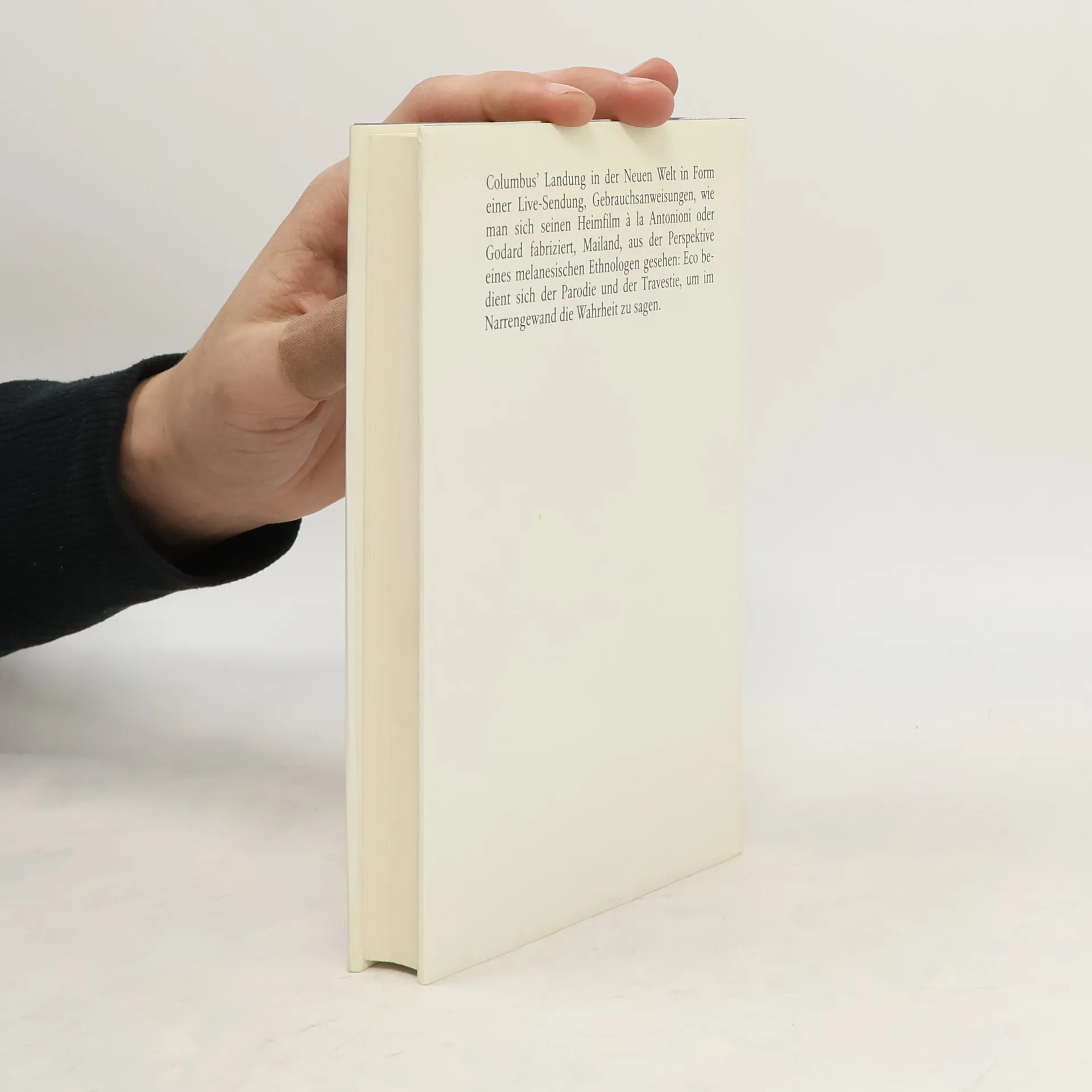 In Italien scheinen nicht nur das Leben und die Liebe problemloser zu sein als anderswo, auch mit der Literatur und der Philosophie tun sich die Italiener leichter. Meisterhaftes Beispiel hierfür sind diese Kabinettstückchen: In einer Parodie auf Nabokovs Lolita liebt ein sehr junger Mann eine Greisin. Per Live-Sendung sind wir dabei, als Columbus die Neue Welt betritt - worüber uns das Fernsehen so berichtet wie seinerzeit über die Landung der Amerikaner auf dem Mond -, und wir werden Zeugen bei der Erfindung des Faustkeils, der, eben erst als nützliches Werkzeug erdacht, sogleich zum Töten benutzt wird. Daneben erfahren wir, wie man als Intellektueller auch dann überlebt, wenn die scheinbar real existierende Lebensgrundlage entfällt. Spätestens hier wird deutlich, daß Parodie und Satire für Eco bei aller Lust am Spott immer auch eine Form des ethischen Engagements sind, nur eben: eine unterhaltsame.