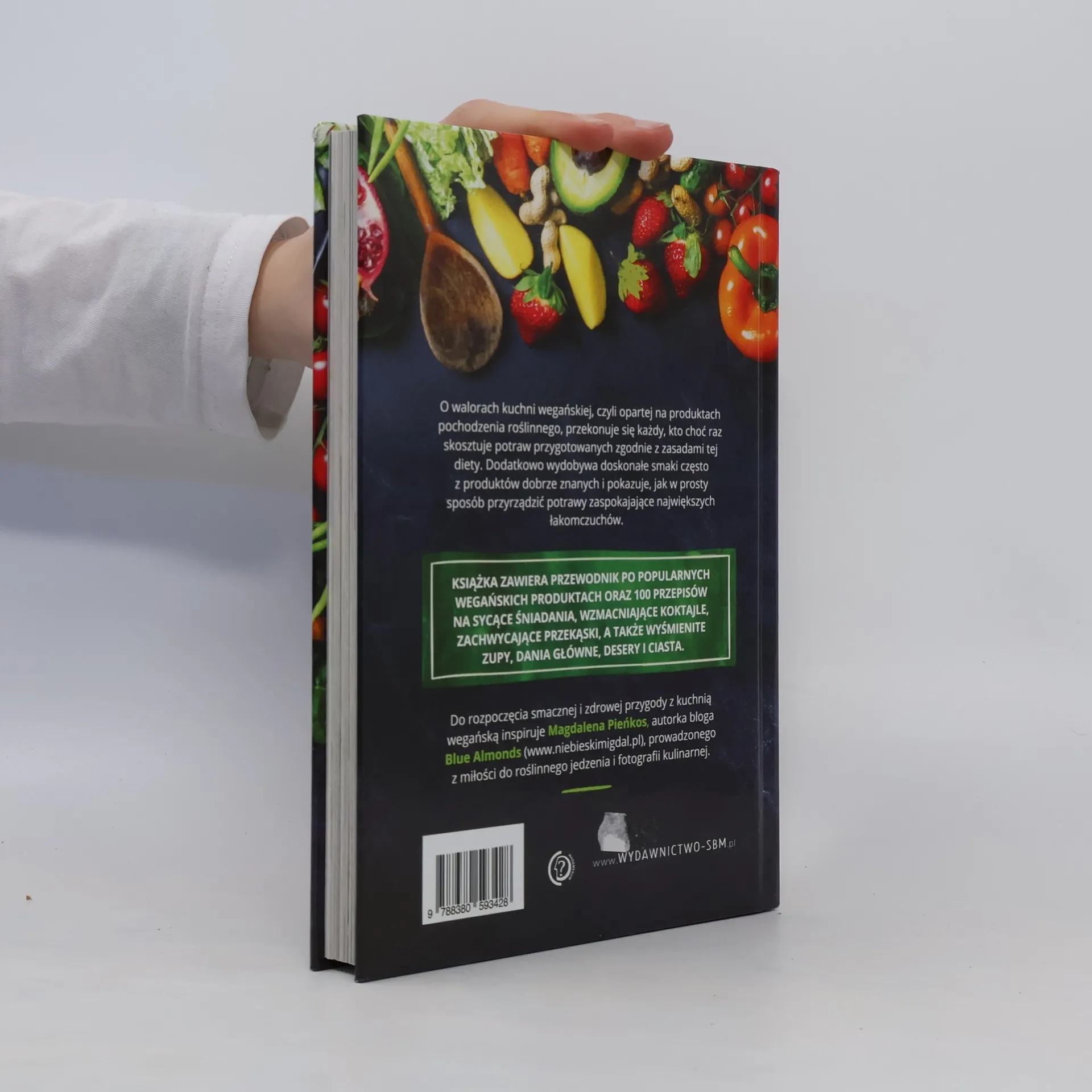 Dziś już mało kogo trzeba przekonywać o walorach kuchni wegańskiej. Odpowiednio zbilansowana, oparta wyłącznie na produktach roślinnych przynosi szereg korzyści zdrowotnych. Dodatkowo wydobywa doskonałe smaki często z produktów dobrze znanych i pokazuje, jak w prosty sposób przyrządzić potrawy zaspokajające największych łakomczuchów. Książka zawiera przewodnik po popularnych wegańskich produktach oraz 100 przepisów na sycące śniadania, wzmacniające koktajle, zachwycające przekąski, a także wyśmienite zupy, dania główne, desery i ciasta. Magdalena Pieńkos, autorka bloga Blue Almonds, inspiruje do rozpoczęcia smacznej i zdrowej przygody z kuchnią wegańską.