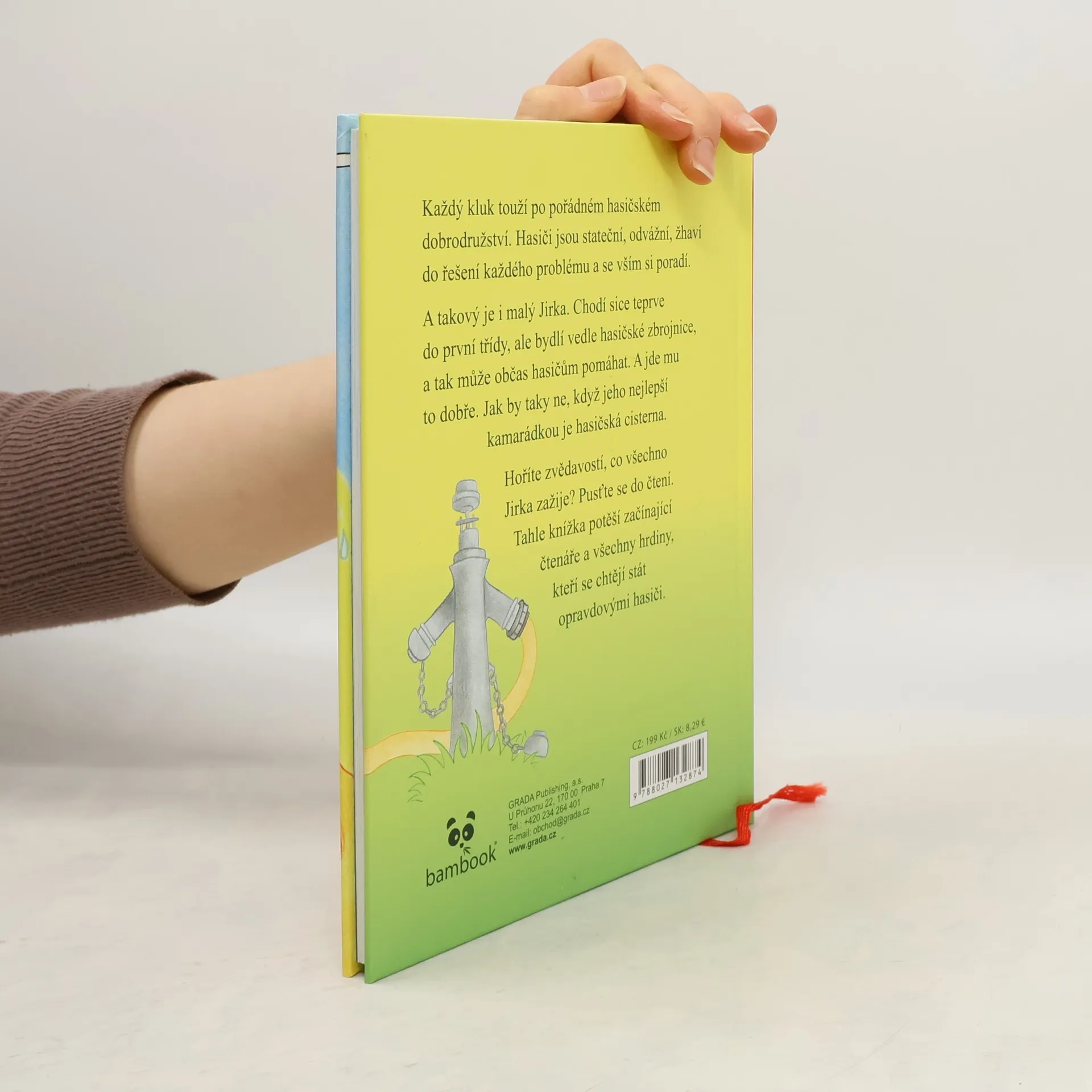 Každý kluk touží po pořádném hasičském dobrodružství. Hasiči jsou stateční, odvážní, žhaví do řešení každého problému a se vším si poradí. A takový je i malý Jirka. Chodí sice teprve do první třídy, ale bydlí vedle hasičské zbrojnice, a tak může občas hasičům pomáhat. A jde mu to dobře. Jak by taky ne, když jeho nejlepší kamarádkou je hasičská cisterna. Hoříte zvědavostí, co všechno Jirka zažije? Pusťte se do čtení. Tahle knížka potěší začínající čtenáře a všechny hrdiny, kteří se chtějí stát opravdovými hasiči.