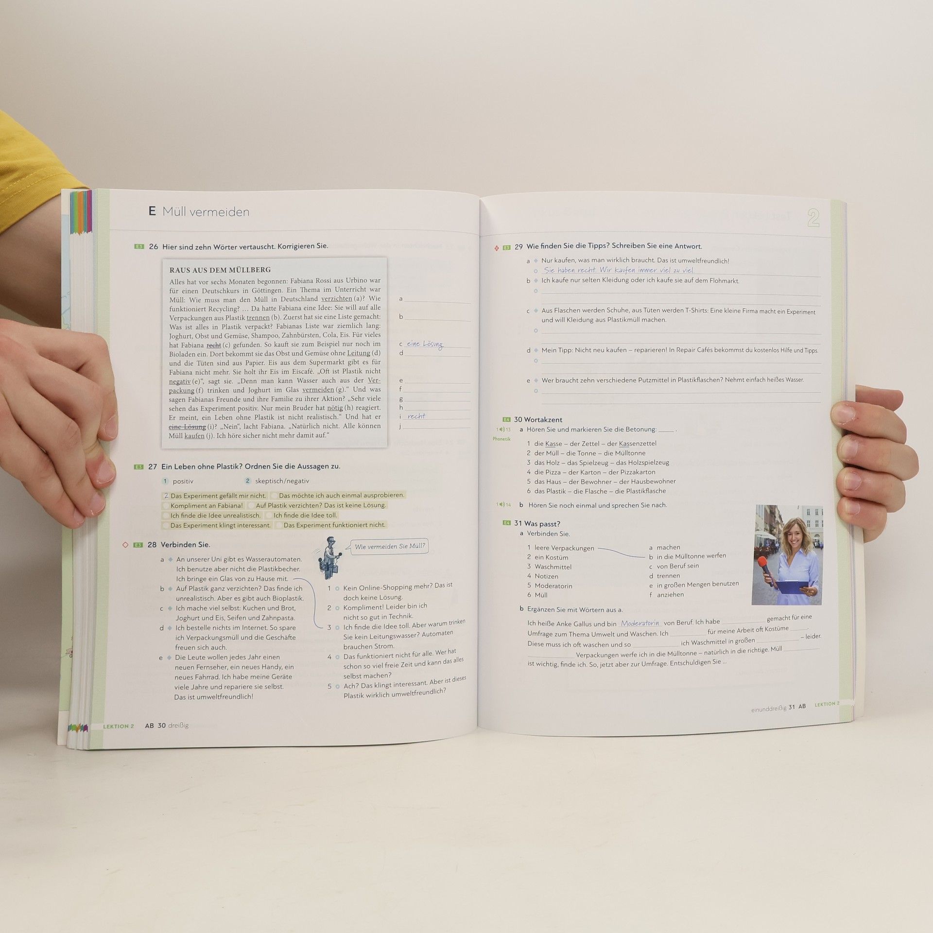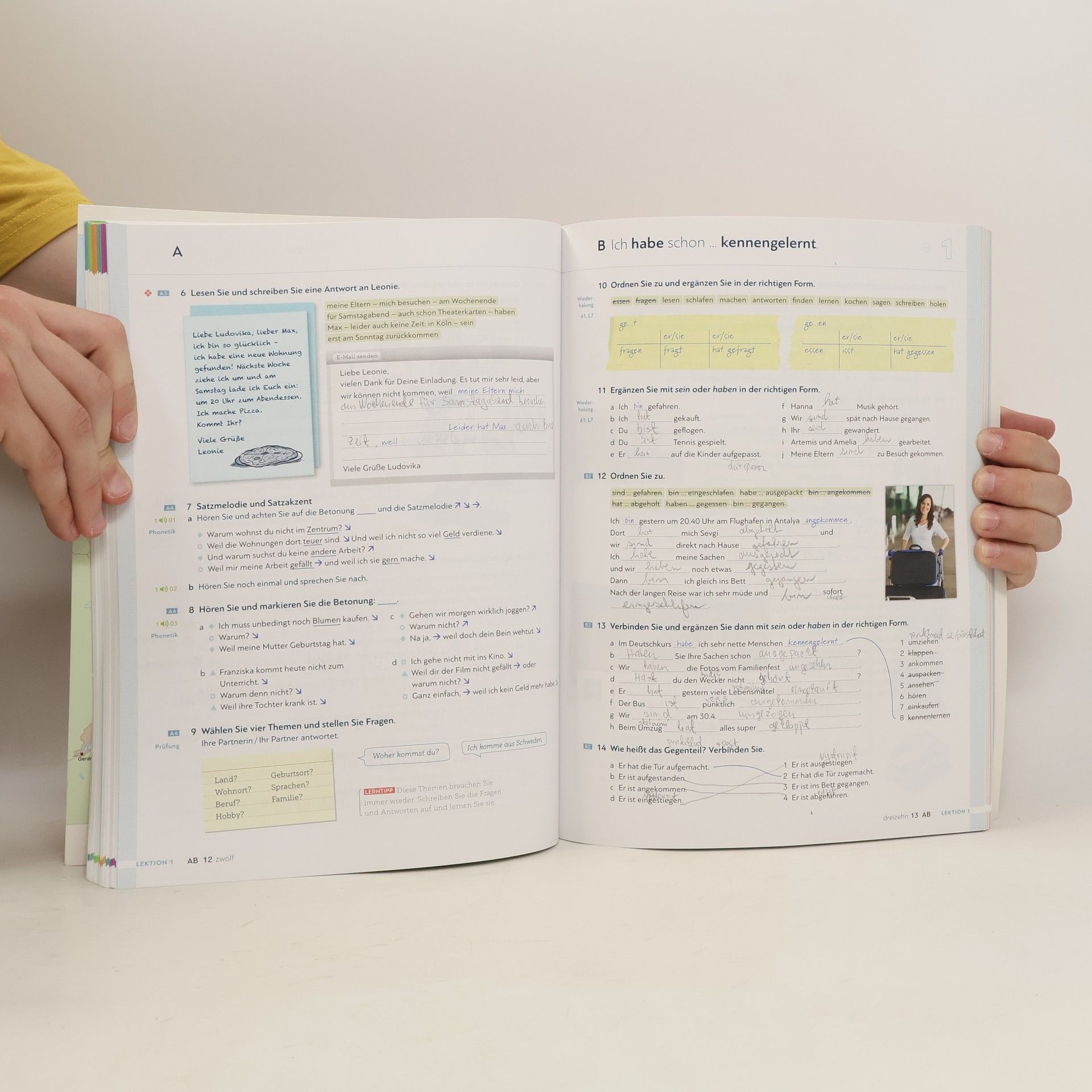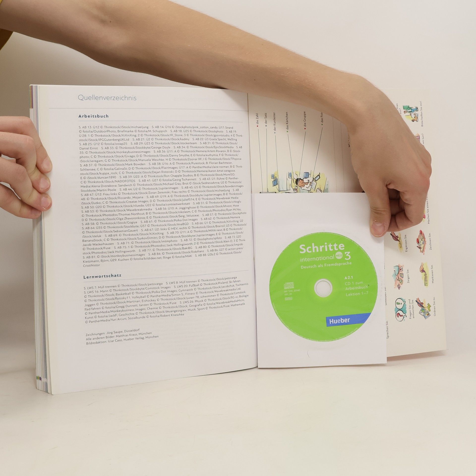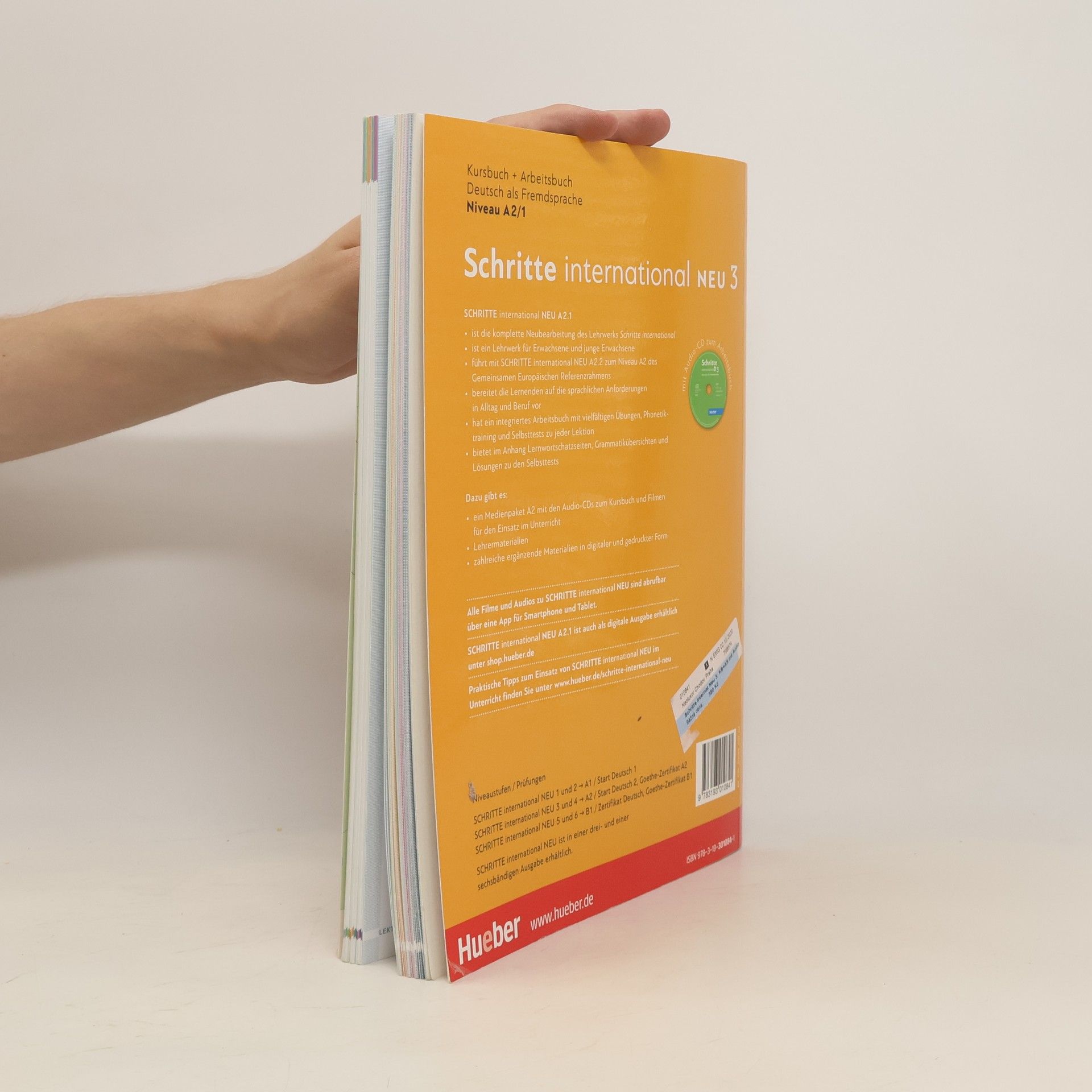 Zielniveau A2.1 Teilband A2.1 Kursbuchteil - alle Lektionen folgen einem klaren Aufbau für hohe Lerntransparenz - neue Foto-Hörgeschichten als Einstieg in jede Lektion - interessante Texte und vielfältige Landeskunde - induktive Grammatik fördert Bewusstmachung und Verständnis - Vorbereitung auf den Berufsalltag durch verstärkten Berufsbezug - Stärkung der Lernerautonomie durch eine Doppelseite zu Grammatik und Redemitteln mit Übungen und Lernhilfen am Ende jeder Lektion - Transparenz durch Lernziele mit der Möglichkeit zur Selbsteinschätzung - flexible Ergänzung der Lektionsinhalte durch die „Zwischendurch mal …-Seiten“ - alle Audiodateien und Filme zum Kursbuch über mobile Geräte (Smartphone, Tablet-PC) abrufbar mit kostenloser App Arbeitsbuchteil - Übungen und Wiederholungsübungen in verschiedenen Schwierigkeitsstufen zur Binnendifferenzierung - ein systematisch aufgebautes Schreibtraining - Wortschatztraining für einen gezielten Wortschatzerwerb - ein ausführliches Phonetikprogramm - Aufgaben zum Mehrsprachigkeitsansatz - Prüfungsaufgaben - Lernertests mit Selbstauswertung und weiterführendem Trainingsprogramm im Lehrwerkservice - integrierte Fokus-Seiten bieten zahlreiche zusätzliche Materialien zu den Themen Beruf und Alltag. - Lernwortschatz-Seiten am Ende des Buches mit Illustrationen und Beispielsätzen, Schreibzeilen und Lerntipps - eine systematische Grammatik-Übersicht im Anhang