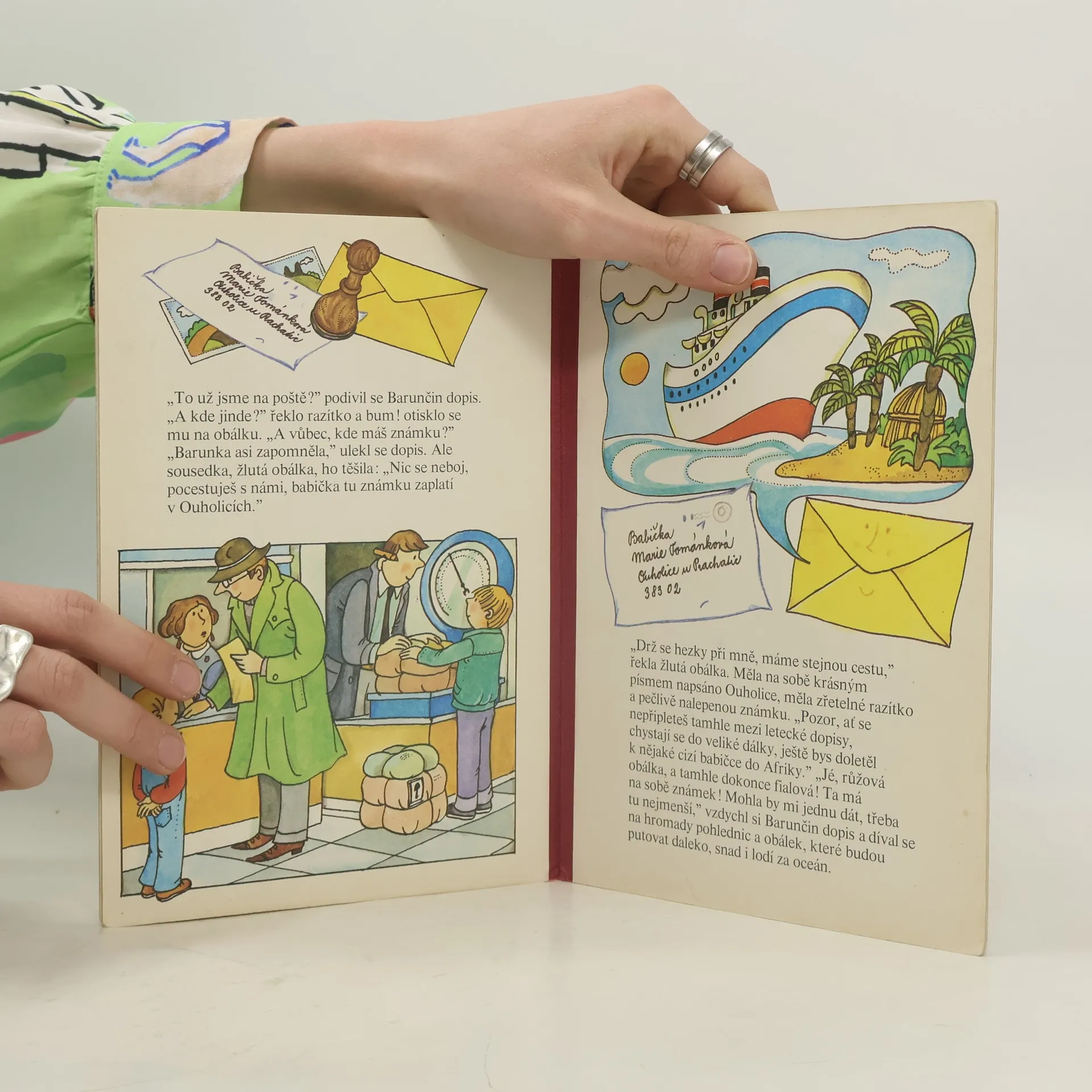 Bohatě ilustrované leporelo o tom, jak malá Barunka posílá dopis babičce a na co přitom zapomene. Příběh tak nenásilně děti učí, jak si mají samy správně počínat a jak to vlastně s takovými psaníčky u pošty chodí.
