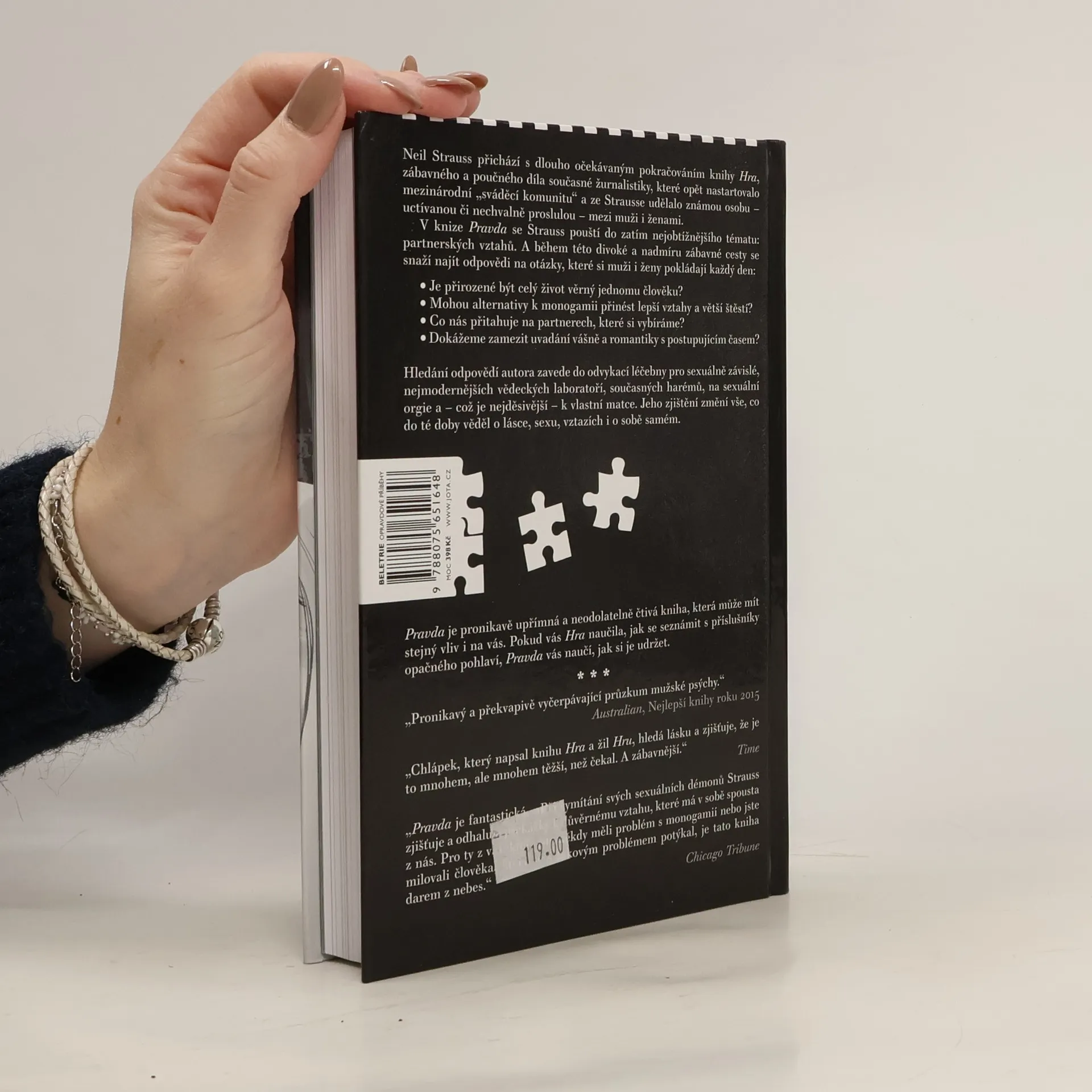 V knize Pravda se Strauss pouští do zatím nejobtížnějšího tématu: partnerských vztahů. A během této divoké a nadmíru zábavné cesty se snaží najít odpovědi na otázky, které si muži i ženy pokládají každý den: Je přirozené být celý život věrný jednomu člověku? Mohou alternativy k monogamii přinést lepší vztahy a větší štěstí? Co nás přitahuje na partnerech, které si vybíráme? Dokážeme zamezit uvadání vášně a romantiky s postupujícím časem? Hledání odpovědí autora zavede do odvykací léčebny pro sexuálně závislé, nejmodernějších vědeckých laboratoří, současných harémů, na sexuální orgie a – což je nejděsivější – k vlastní matce. Jeho zjištění změní vše, co do té doby věděl o lásce, sexu, vztazích i o sobě samém. Pravda je pronikavě upřímná a neodolatelně čtivá kniha, která může mít stejný vliv i na vás. Pokud vás Hra naučila, jak se seznámit s příslušníky opačného pohlaví, Pravda vás naučí, jak si je udržet.