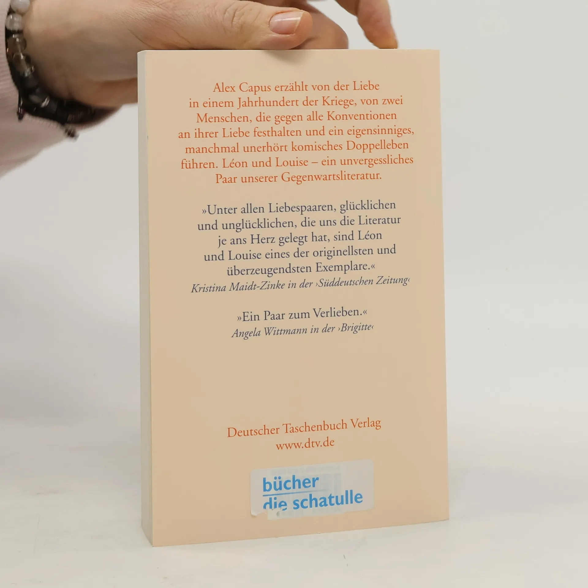 »Ein Paar zum Verlieben.« Angela Wittmann in ›Brigitte‹ Zwei junge Menschen verlieben sich, aber der Krieg bringt sie auseinander: Das ist die Geschichte von Léon und Louise – die Geschichte einer großen Liebe, gelebt gegen die ganze Welt. Sie beginnt mit ihrer Begegnung im Ersten Weltkrieg in Frankreich an der Atlantikküste, doch dann trennt sie ein Fliegerangriff mit Gewalt. Sie halten einander für tot, Léon heiratet, Louise geht ihren eigenen Weg – bis sie sich 1928 zufällig in der Pariser Métro wiederbegegnen. Ein Paar, das gegen alle Konventionen an seiner Liebe festhält und ein eigensinniges, manchmal unerhört komisches Doppelleben führt.