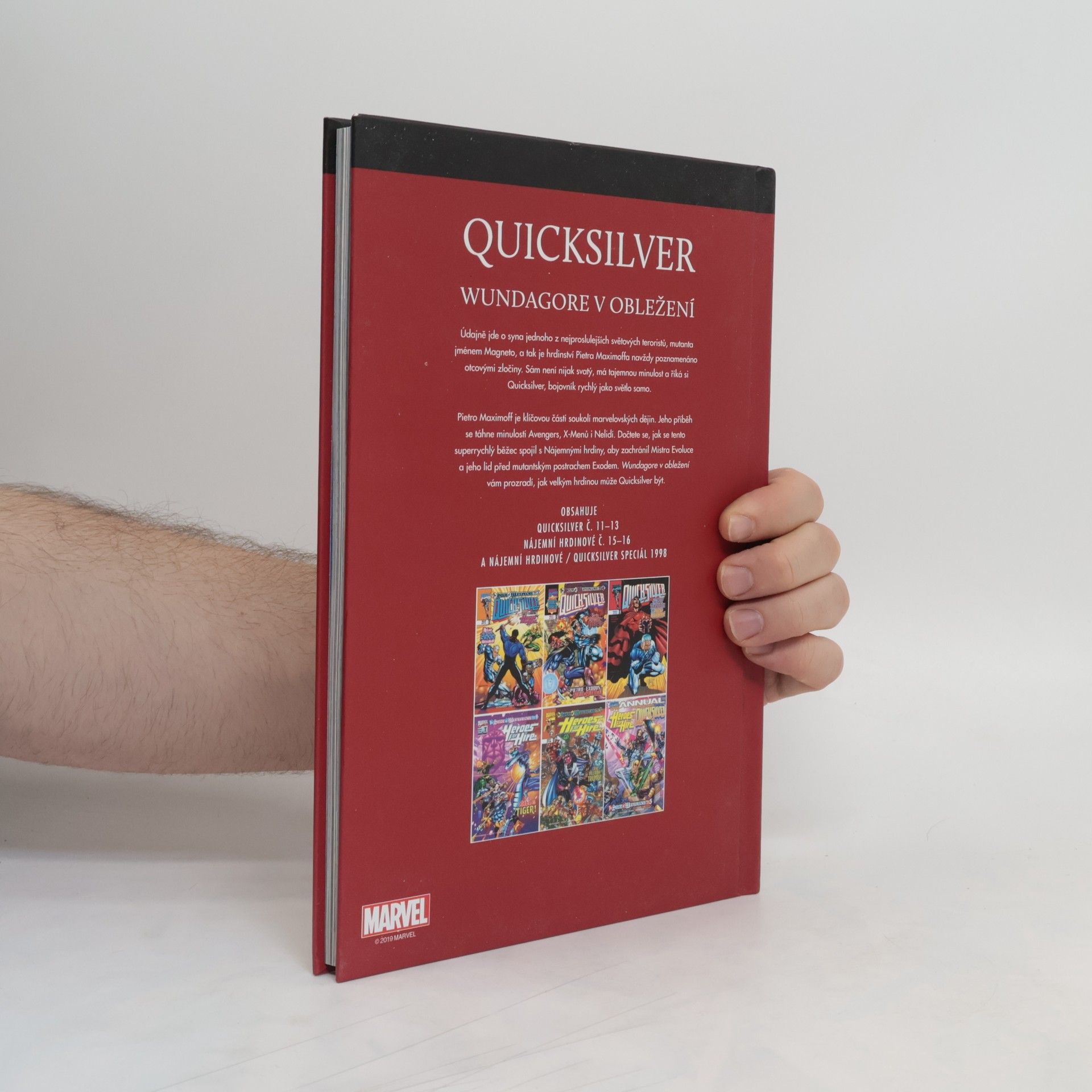 Údajně jde o syna jednoho z nejproslulejších světových teroristů, mutanta jménem Magneto, a tak je hrdinství Pietra Maximoffa navždy poznamenáno otcovými zločiny. Sám není nijak svatý, má tajemnou minulost a říká si Quicksilver, bojovník rychlý jako světlo samo. Pietro Maximoff je klíčovou částí soukolí marvelovských dějin. Jeho příběh se táhne minulostí Avengers, X-Menů i Nelidí. Dočtete se, jak se tento superrychlý běžec spojil s Nájemnými hrdiny, aby zachránil Mistra Evoluce a jeho lid před mutantským postrachem Exodem. Wundagore v obležení vám prozradí, jak velkým hrdinou může Quicksilver být. Obsahuje Quicksilver č. 11-13, Nájemní hrdinové č. 15-16 a Nájemní hrdinové/Quicksilver Speciál 1998.