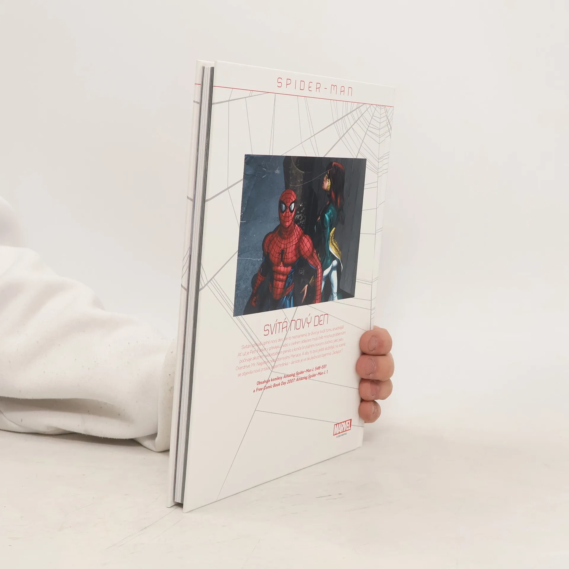 Svítání přináší úplně nový den, ale to neznamená, že život je kvůli tomu snadnější. Ať už je Petr Parker v převleku nebo v civilním oblečení, musí čelit mnoha problémům počínaje akutním nedostatkem peněz a konče brutálními novými zločinci, jako jsou Overdrive, Mr. Negative nebozlomyslný Menace. A aby to bylo ještě složitější, na scéně se objevila nová zrzavá superhrdinka - ale kdo je ve skutečnosti tajemná Jackpot? Obsahuje komiksy: Amazing Spider-Man č. 546-551 a Free Comic Book Day 2007: Amazing Spider-Man č. 1. Obsahuje příběhy: Svítá nový den Odpolední směna Neuvěřitelná teta May Harry a Hollisterovi Mezihra v Park Avenue