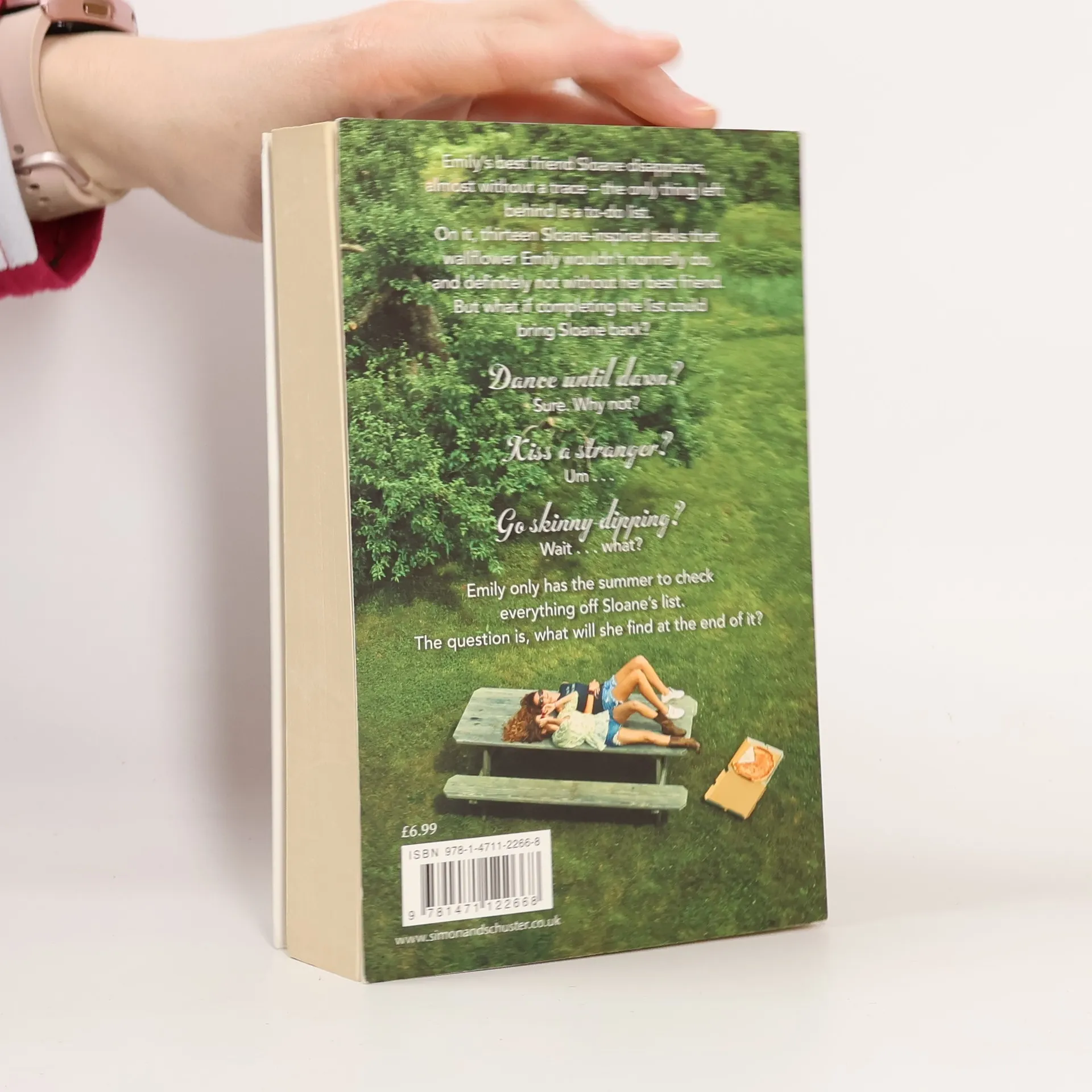It was Sloane who yanked Emily out of her shell and made life 100% interesting. But right before what should have been the most epic summer, Sloane just…disappears. All she leaves behind is a to-do list.On it, thirteen Sloane-inspired tasks that Emily would normally never try. But what if they could bring her best friend back?Apple picking at night? Okay, easy enough.Dance until dawn? Sure. Why not?Kiss a stranger? Um... Emily now has this unexpected summer, and the help of Frank Porter (totally unexpected), to check things off Sloane's list. Who knows what she’ll find?Go skinny-dipping? Wait...what?