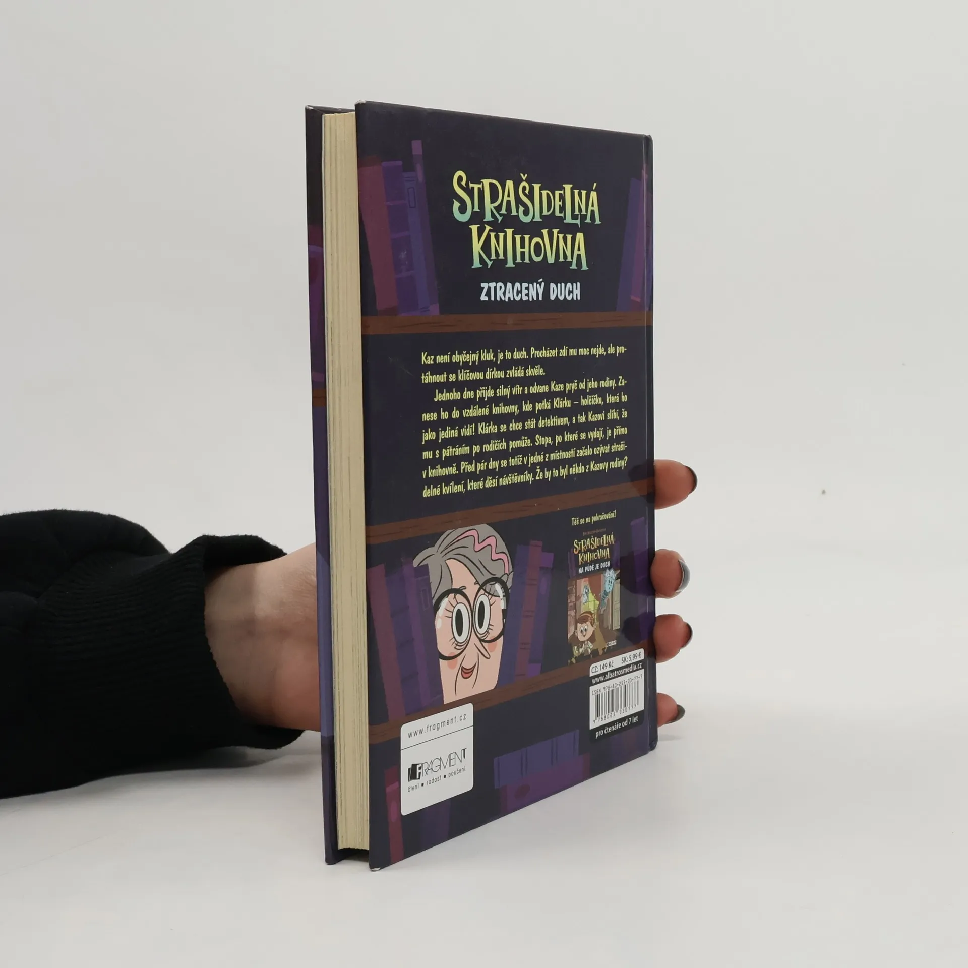 Chcete, aby děti rády četly? Nabídněte jim příběh, který je bude bavit. Pozvěte je do Strašidelné knihovny! Kaz není obyčejný kluk, je to duch. Jednoho dne přijde silný vítr a odvane ho pryč od jeho rodiny. Zanese ho do vzdálené knihovny, kde potká Klárku – holčičku, která ho jako jediná vidí! Klárka se chce stát detektivem, a tak Kazovi slíbí, že mu s pátráním po rodičích pomůže. Stopa, po které se vydají, je přímo v knihovně. Před pár dny se totiž v jedné z místností začalo ozývat strašidelné kvílení, které děsí návštěvníky. Že by to byl někdo z Kazovy rodiny?