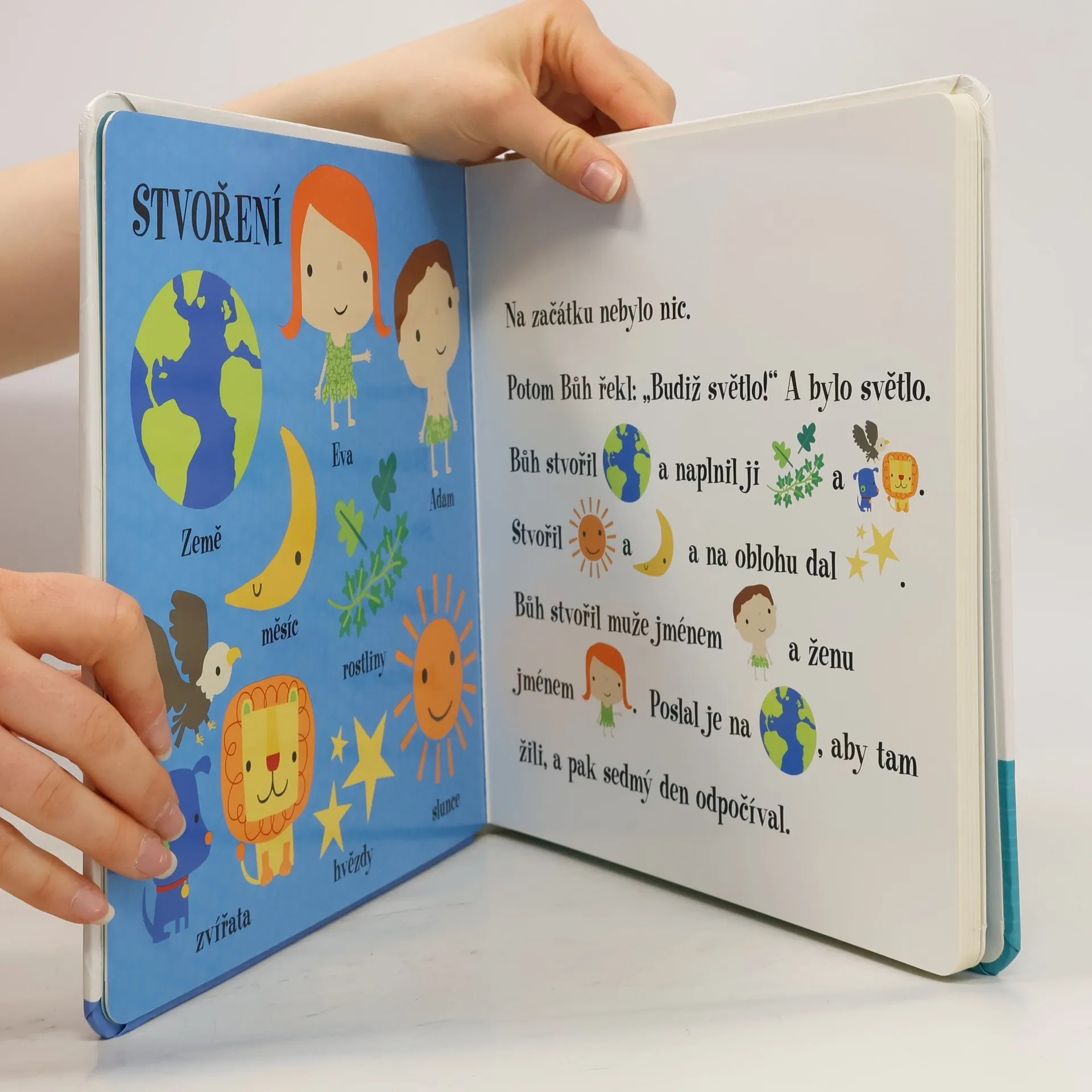 Čti a doplňuj – poslouchej příběhy, dívej se na obrázky a vypravuj, jak to bylo dál. Biblické příběhy jsou převyprávěny pomocí kombinace textu a ilustrací. Tato sbírka obsahuje nejznámější biblické příběhy ze Starého i Nového zákona. Klasické texty jsou pro děti převyprávěny poutavou formou, která je pomocí kombinace textu a obrázků vtahuje do příběhů a zapojuje do čtení. Ilustrovaná klíčová slova dětem pomáhají při pochopení. Díky jednoduchému textu, ve kterém se malí čtenáři snadno zorientují, je tato kniha ideální pro společné chvíle čtení dětí a rodičů. Seznamte se své děti se základy evropské kultury.
