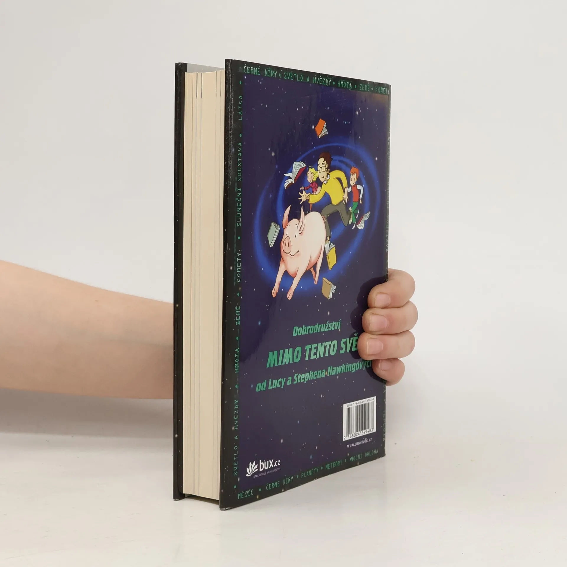 Za vším je útěk Jirkova ochočeného prasátka. Díky němu se Jirka seznámí se svými sousedy - Aničkou a jejím otcem Erikem, který se zabývá vědou. Erik má nejvýkonnější počítač na světě a říká mu Kosmo. Ten dokáže vyslat Jirku a jeho kamarády na jakékoli místo ve vesmíru. Kosma by ovšem rád využil i někdo jiný - a Erik s Jirkou se tím dostanou do obrovského nebezpečí. Ve vesmíru totiž není nic nebezpečnějšího než černá díra... Kniha se čte jedním dechem a spojuje veselé dobrodružství s vědeckými údaji o vesmíru. Najdete v ní nejnovější poznatky o černých dírách od Stephena Hawkinga a také mnoho barevných fotografií přímo z kosmu.