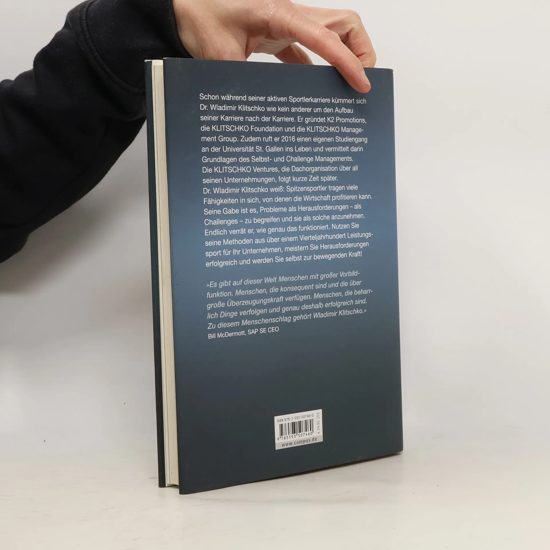 Inhalt Begrüßung, Tatjana Kiel 7 Vorwort, Bill McDermott: Der Kampf, der Fall und der Aufstieg 9 Was für ein Kampf! 15 Teil I Herausforderungen sind wie die Luft zum Atmen Wie alles begann 19 Ergo sum: Ich weiß, wer ich bin 33 Ich bin keine Marionette, ich kann alleine laufen 65 Wissen wird mehr, wenn wir es teilen 82 Teil II Meine zwölf Antworten auf Herausforderungen Weg 1: Coopetition ermöglichen und nutzen 99 Weg 2: Progressiv denken und mutig handeln 101 Weg 3: Aus Niederlagen lernen und neues Potenzial ziehen 103 Weg 4: Eigene Erfolge nutzen und andere teilhaben lassen 105 Weg 5: Langfristig planen und kontinuierlich Leistung erbringen 107 Weg 6: Auszeiten zur Reflexion nutzen 109 Weg 7: Auf Wesentliches fokussieren 111 Weg 8: Auf eigene Kompetenzen vertrauen 113 Weg 9: Potenzial identifizieren und nutzbar machen 115 Weg 10: Höchstleistung explosiv abrufen 118 Weg 11: Organisationsstrukturen schaffen 120 Weg 12: Stärken und Schwächen des Gegners kennen und nutzen 122 Teil III Wie Experten in der Praxis Challenge Management anwenden Weg 1: Coopetition, Frank Dopheide 127 Weg 2: Progressivität, Allyssa Jade McDonald-Bärtl 133 Weg 3: Niederlagen, Rolf Schumann 140 Weg 4: Erfolge, Ibrahim Evsan 147 Weg 5: Planung und Leistung, Christian Seifert 153 Weg 6: Reflexion, Miriam Goos 160 Weg 7: Wesentliches, Jens Schmelzle 166 Weg 8: Kompetenzen, Jean-Remy von Matt 172 Weg 9: Potenzial, Leopold Hoesch 178 Weg 10: Höchstleistung, M