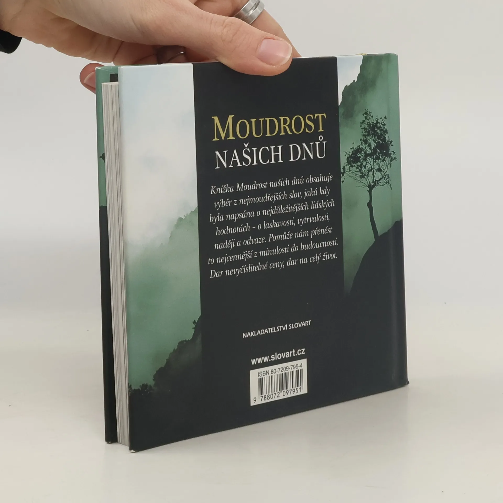 Knížka moudrost našich dnů obsahuje výběr z nejmoudřejších slov, jaká kdy byla napsána o nejdůležitějších lidských hodnotách - o laskavosti, vytrvalosti, naději a odvaze. Pomůže nám přenést to nejcennější z minulosti do budoucnosti. Dar nevyčíslitelné ceny; dar na celý život. Kniha je vkusně doplněna poetickými ilustracemi.