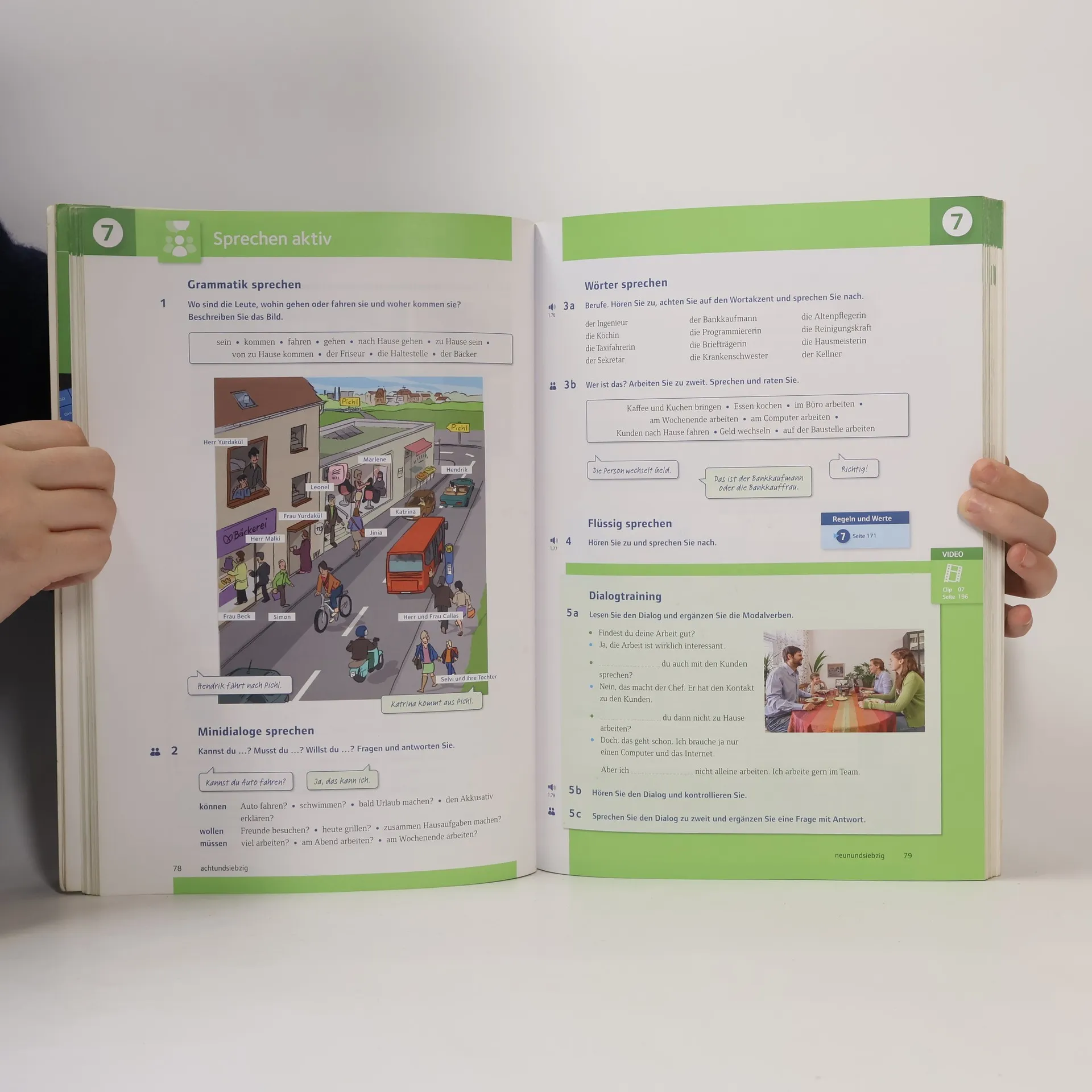 Die Kursbücher mit Video-Episoden als MP4-Download bieten humorvolle Einblicke in Alltagssituationen in Österreich und sind sowohl für den Unterricht als auch für Selbstlernphasen geeignet. Die Reihe ist speziell für Integrationskurse in Österreich konzipiert, die auf der Integrationsvereinbarung 2011 basieren. Das Lehrwerk richtet sich an Erwachsene ohne Deutsch-Vorkenntnisse und vermittelt das Deutsch der österreichischen Standardsprache, während es gleichzeitig Werte- und Orientierungswissen für das Leben und Arbeiten in Österreich berücksichtigt. Es bereitet auf Prüfungen wie A1 Fit für Österreich, den ÖIF-Test Neu und die neue Prüfung zum Werte- und Orientierungswissen vor. Die Themen sind praxisnah und orientieren sich an den Lebensrealitäten von Migrantinnen und Migranten, mit Schwerpunkten auf Ämterbesuchen, Wohnungs- und Jobsuche sowie Familie. Die drei Gesamtbände bieten 160 bis 240 Unterrichtseinheiten. Zusätzlich gibt es Arbeitsbücher mit integrierten MP3-Audio-Dateien, ein umfangreiches Übungsangebot, Bildseiten für die Wortschatzarbeit und eine systematische Zusammenfassung der Grammatik. Die Handreichungen für den Unterricht enthalten nützliche Tipps, Modelltests, Informationen zur Landeskunde und Kopiervorlagen.
