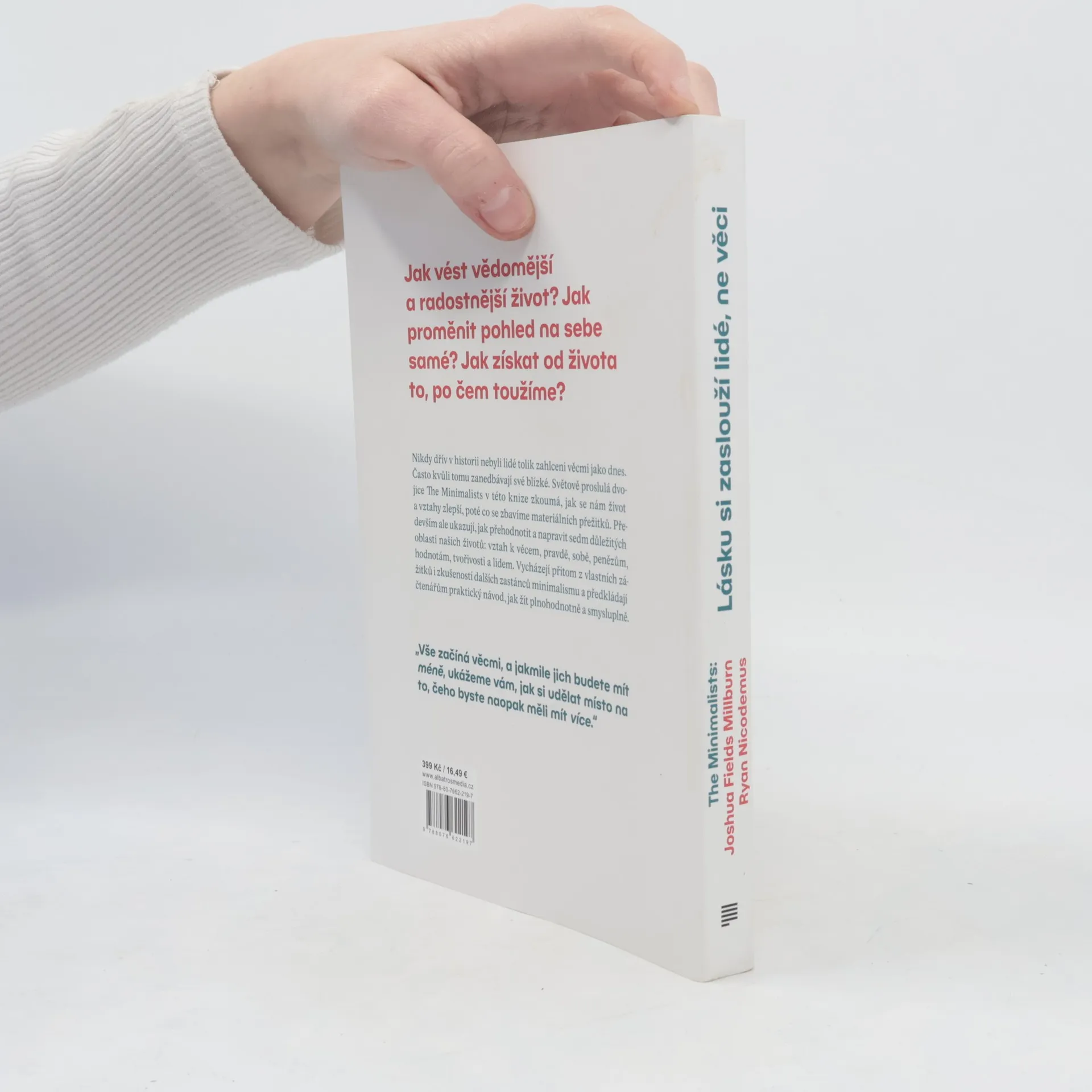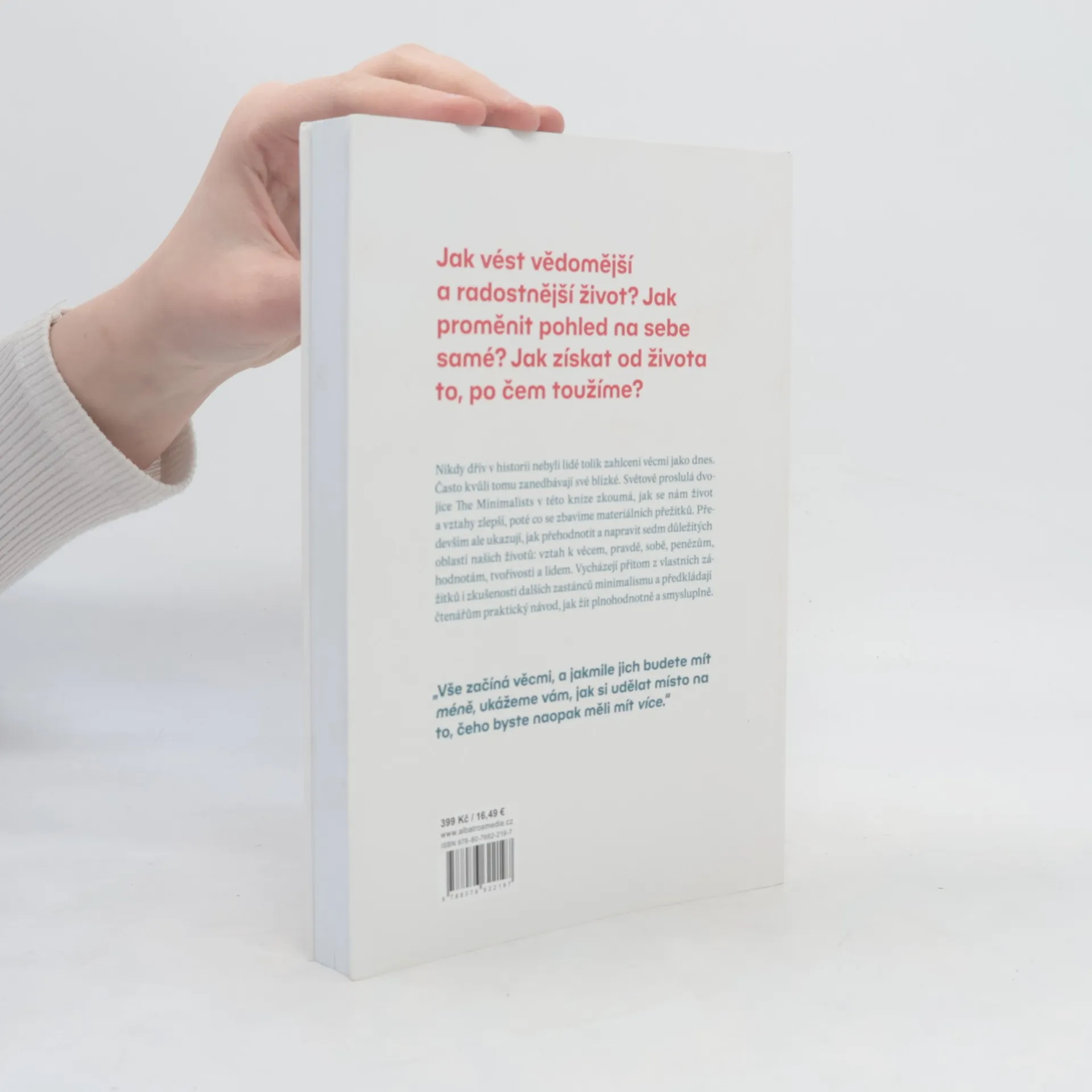 Světově proslulá autorská dvojice The Minimalists přichází s dosud nejosobnější zpovědí a receptem na spokojený život, který vás bezpochyby překvapí! Nikdy dřív v historii nebyli lidé tolik zahlceni věcmi jako dnes. Často kvůli tomu zanedbávají své blízké. Autoři oblíbeného blogu The Minimalists zkoumají, jak se nám život a vztahy zlepší, poté co se zbavíme materiálních přežitků. Především ale ukazují, jak přehodnotit sedm důležitých oblastí našich životů: vztah k věcem, pravdě, sobě, penězům, hodnotám, tvořivosti a lidem. Na základě vlastních zkušeností předkládají nejen návod, jak žít plnohodnotně a smysluplně, ale i spoustu námětů k zamyšlení.