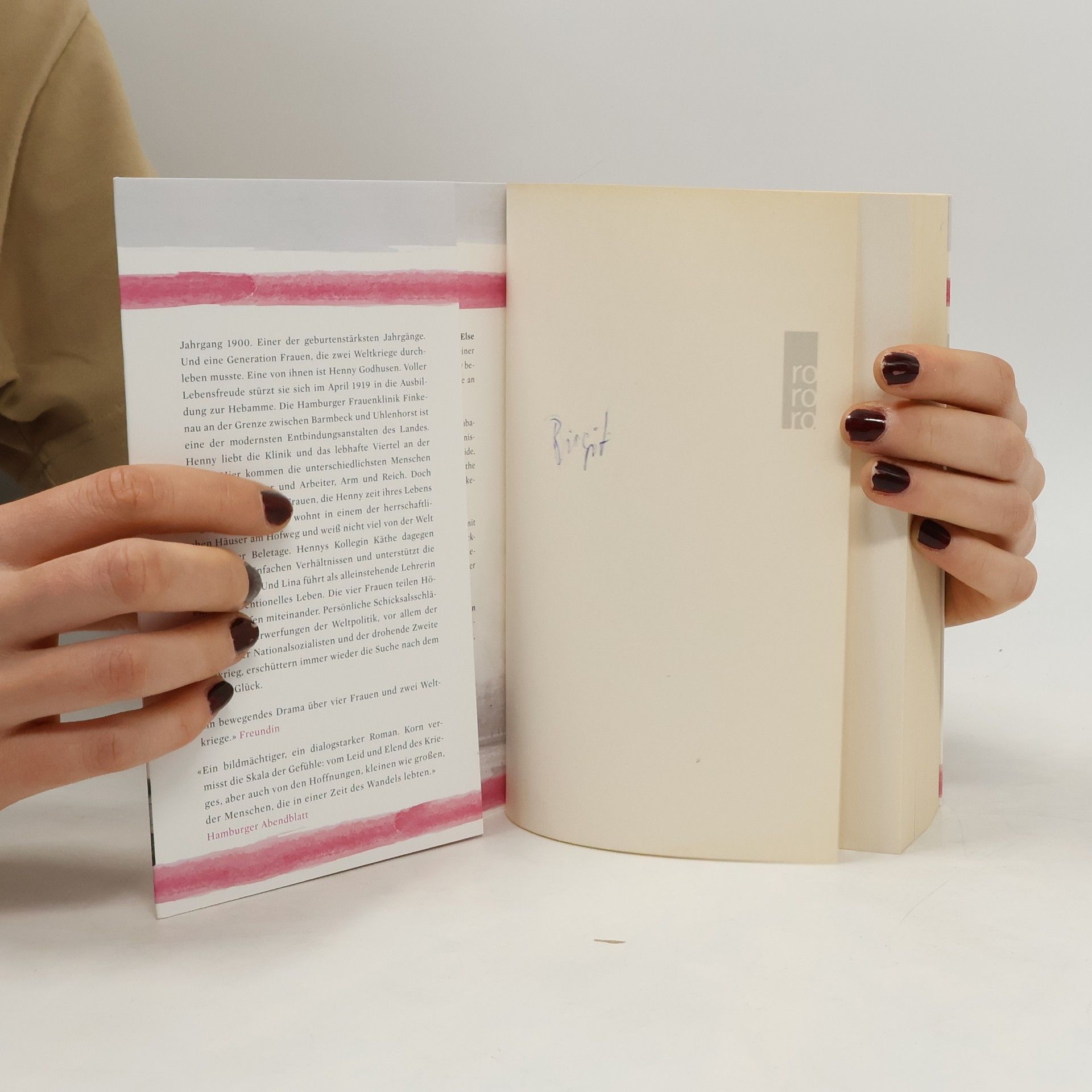 Vier Frauen, Zwei Weltkriege, Hundert Jahre Deutschland Einer neuen – einer friedlichen – Generation auf die Welt helfen, das ist Henny Godhusens Plan, als sie im Frühjahr 1919 die Hebammenausbildung an der Hamburger Frauenklinik Finkenau beginnt. Gerade einmal neunzehn Jahre ist sie alt, doch hinter ihr liegt bereits ein Weltkrieg. Jetzt herrscht endlich Frieden, und Henny verspürt eine große Sehnsucht nach Leben. Drei Frauen begleiten sie auf ihrem Weg: Ida wohnt in einem der herrschaftlichen Häuser am Hofweg und weiß nicht viel von der Welt jenseits der Beletage. Hennys Kollegin Käthe dagegen stammt aus einfachen Verhältnissen und unterstützt die Kommunisten. Und Lina führt als alleinstehende Lehrerin ein unkonventionelles Leben. Die vier Frauen teilen Höhen und Tiefen miteinander, persönliche Schicksalsschläge und die Verwerfungen der Weltpolitik, vor allem der Aufstieg der Nationalsozialisten und der drohende Zweite Weltkrieg, erschüttern immer wieder die Suche nach dem kleinen Glück. «Töchter einer neuen Zeit» ist der Auftakt einer Trilogie, die diese vier Frauen, ihre Kinder und Enkelkinder durch das 20. Jahrhundert begleitet.
