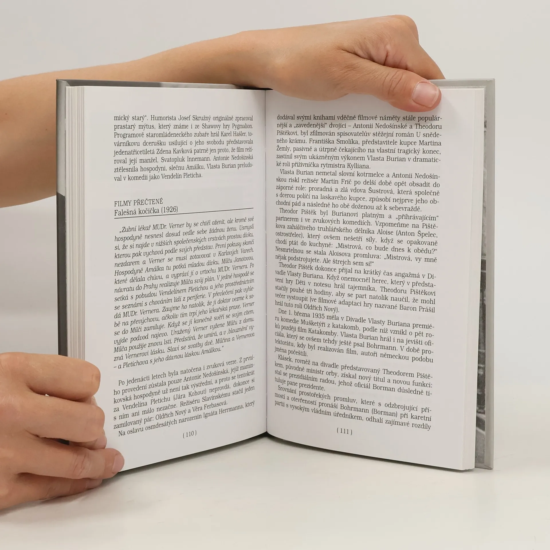 Kniha známého filmového historika o jedné z nejpopulárnějších dvojic českého filmu. Z boubelaté Toničky Valečkové, ze které chtěla mít maminka švadlenu, vyrostla nejznámější česká filmová maminka Antonie Nedošínská, Theodor Pištěk ztvárnil během své strmé herecké kariéry přes tři sta filmových postav. O životní a umělecké pouti obou hereckých partnerů vypovídá tato knížka sestavená z archivních materiálů, dobových článků, rukopisných vzpomínek a množství méně známých fotografií.