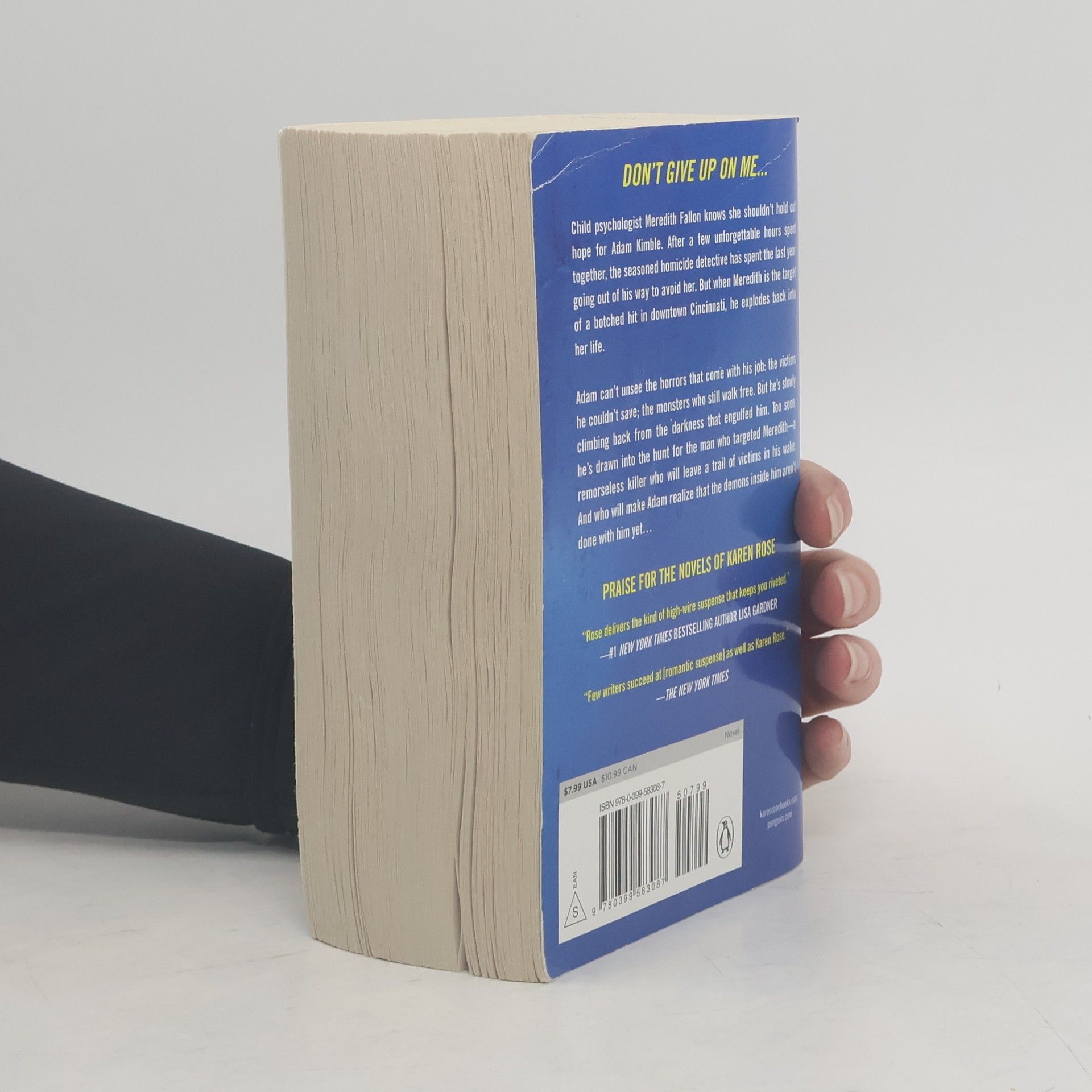 A Cincinnati detective questions everything he knows--and everyone he trusts--in the new novel of romantic suspense from New York Times bestseller Karen Rose. Homicide detective Adam Kimble is no stranger to battling demons. But Meredith Fallon is a different kind of weakness: one that could actually be good for him, if only he would let himself depend on her. Meredith has loved Adam for a year, and seeing how hard he's worked to deal with his PTSD makes her feelings only stronger, but she respects his needs. Her work keeps her busy anyway: she counsels sexually abused women like Mallory Martin to help them reintegrate into the world. But someone doesn't want Meredith helping women like Mallory, and Meredith finds herself in the crosshairs of a very determined killer. Adam would risk anything for her, but they'll soon find out she isn't the only target...
