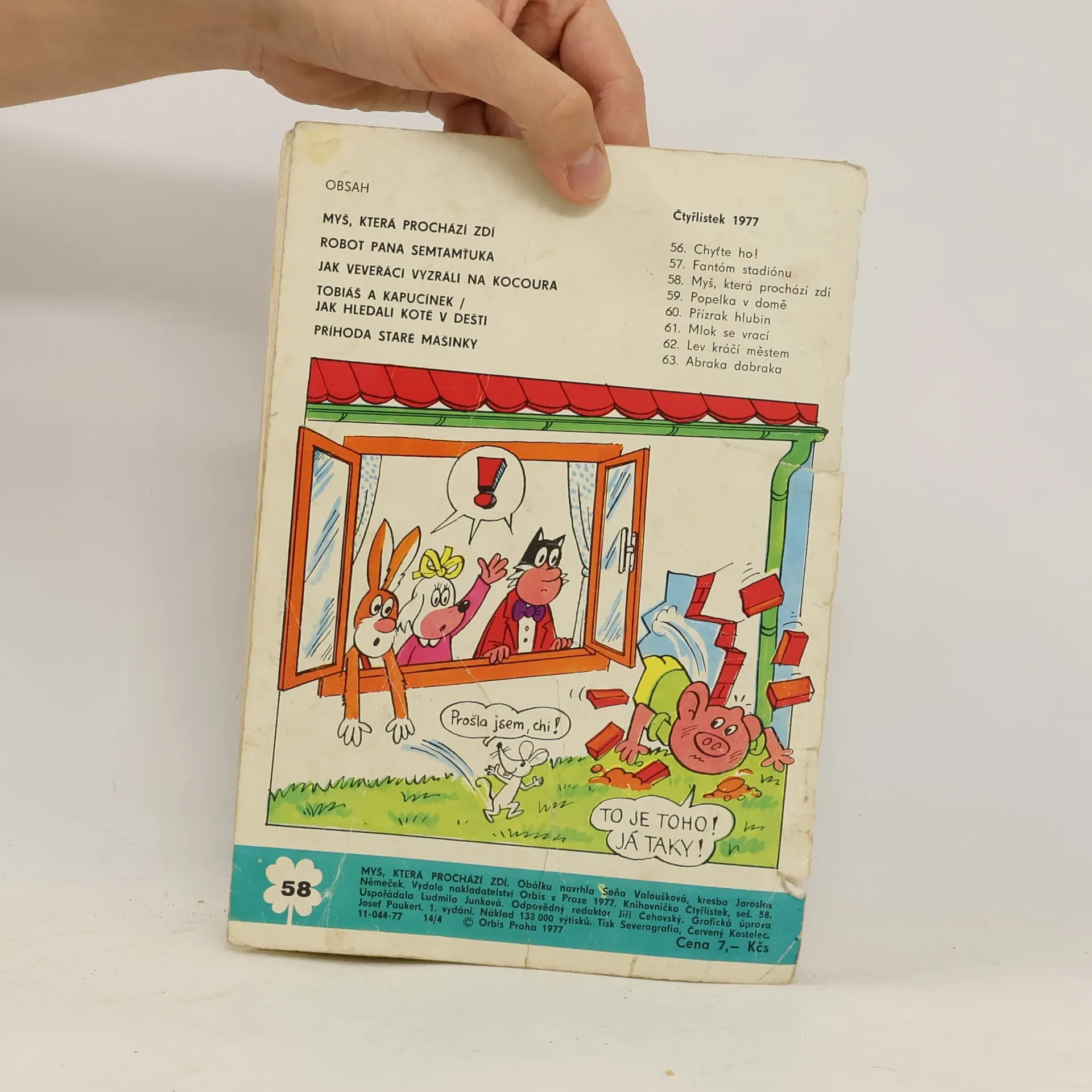 Skladem máme celkem knihy Čtyřlístek 58. Myš, která prochází zdí (1977).